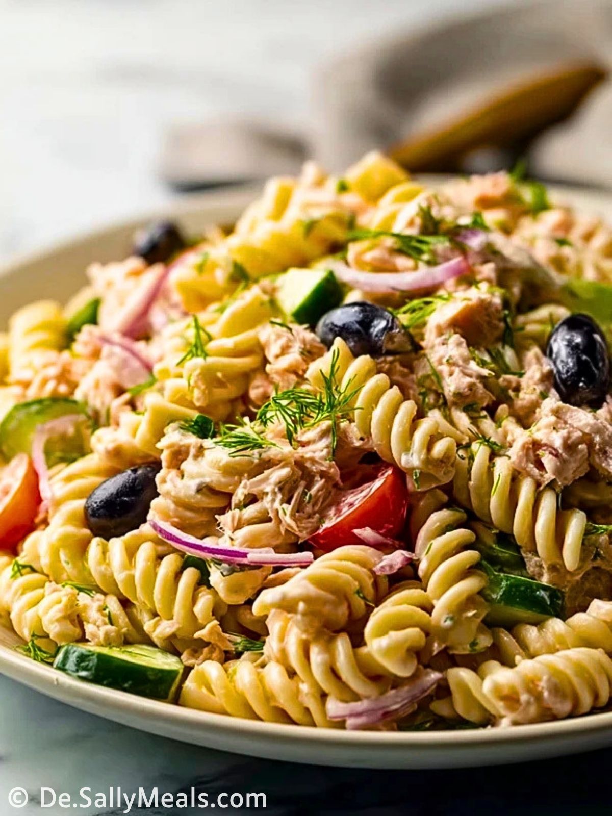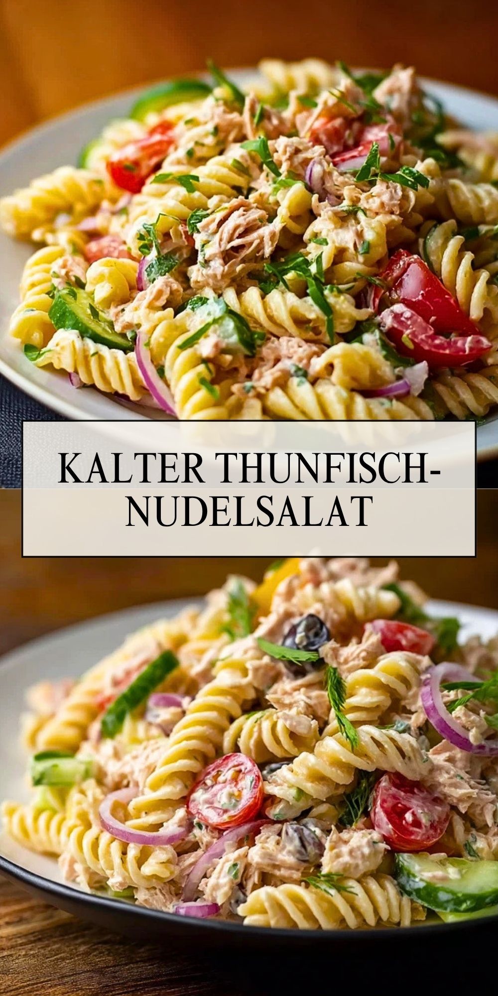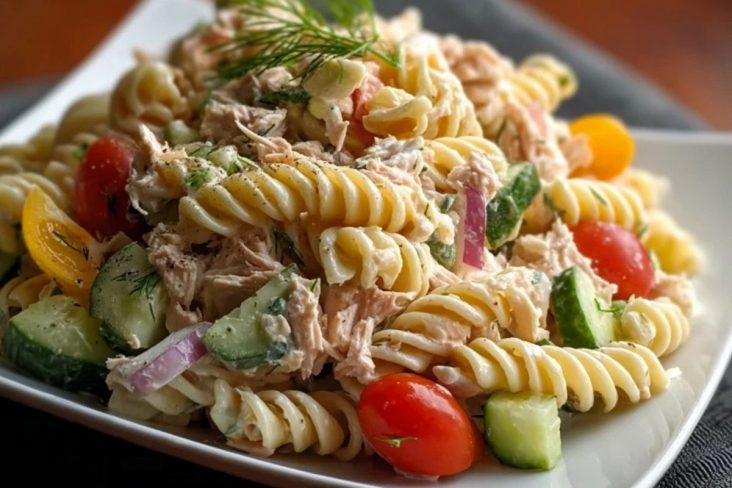 Dieser kalte Thunfisch-Nudelsalat ist cremig, frisch und wunderbar unkompliziert. Mit zarten Fusilli, herzhaftem Thunfisch, knackiger Gurke, saftigen Kirschtomaten und einem würzigen Dressing ist er ideal für warme Tage, Buffets, Picknicks oder ein schnelles Mittagessen.