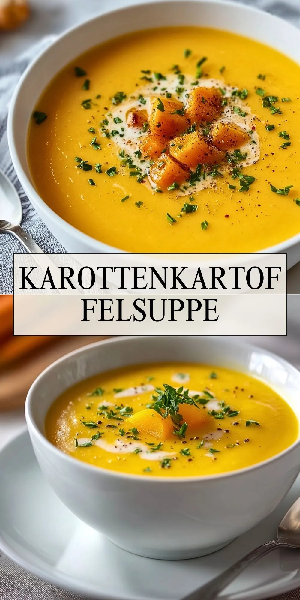 Diese Karottenkartoffelsuppe vereint die natürliche Süße von Karotten mit der cremigen Textur von Kartoffeln – perfekt für kalte Tage und einfach zuzubereiten. Frische Kräuter und ein Klecks Sahne sorgen für das besondere Etwas.
