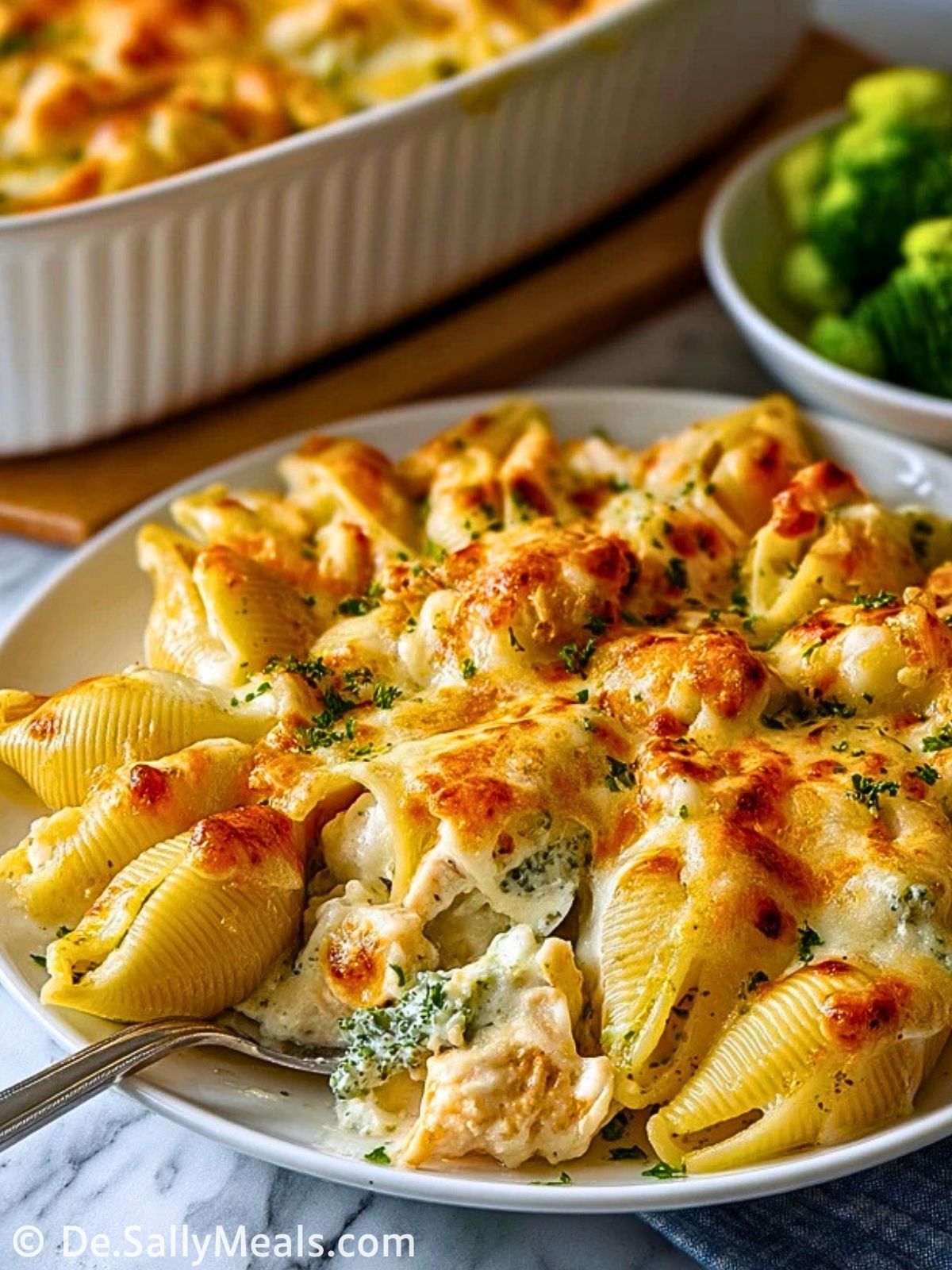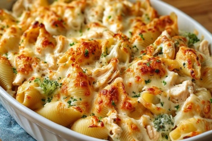 Cremige, mit Käse überbackene Nudelschalen mit zartem Hähnchen und Brokkoli machen diesen Auflauf zu einem herzhaften Ofengericht, das wunderbar sättigt und zugleich angenehm alltagstauglich ist. Die Füllung ist weich und würzig, die Soße schön cremig und die goldene Käsekruste sorgt für genau den Wohlfühlfaktor, den man sich von einem gelungenen Auflauf wünscht.