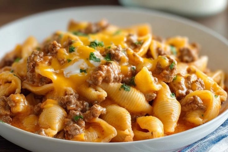 Käse-Ranch-Rindfleisch-Nudeln sind eine cremige One-Pot-Pasta mit saftigem Rinderhack, würziger Ranch-Note und geschmolzenem Käse – perfekt als schnelles, herzhaftes Familienessen für jeden Tag.