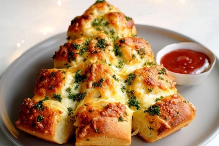 Die fluffigen Brötchen werden wie ein Weihnachtsbaum arrangiert, großzügig mit würzigem Käse und frischer Petersilie bestreut und im Ofen goldig überbacken. Serviere dazu eine pikante Tomatensauce oder deinen Lieblingsdip – dieses Brot begeistert Groß und Klein und sorgt für festliche Vorfreude bei jedem Bissen.