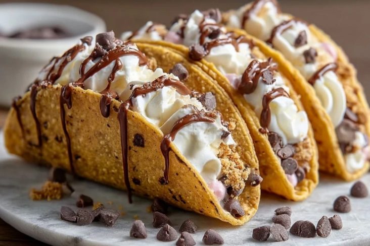 Käsekuchen Cookie Dough Tacos sind ein unwiderstehliches Dessert, das zwei absolute Lieblingsklassiker miteinander kombiniert: knusprige, schokoladige Taco-Schalen gefüllt mit einer cremigen Käsekuchenmasse und herrlich rohem Cookie Dough. Die Tacos werden anschließend mit Schokostückchen, Keksstreuseln und einer feinen Schokoladensauce getoppt. Das Ergebnis? Ein himmlisches Fingerfood für jede Party oder als verspielter Abschluss eines gemütlichen Essens mit Freunden und Familie.