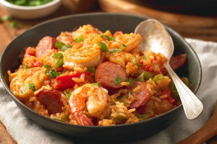 Klassisches Jambalaya ist ein herzhaftes One-Pot-Reisgericht aus der kreolischen Küche mit würziger Wurst, saftigen Garnelen, viel Gemüse und aromatischer Brühe – perfekt, wenn du ohne großen Aufwand ein vollwertiges, leicht scharfes Familienessen auf den Tisch bringen möchtest.