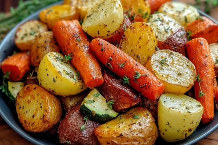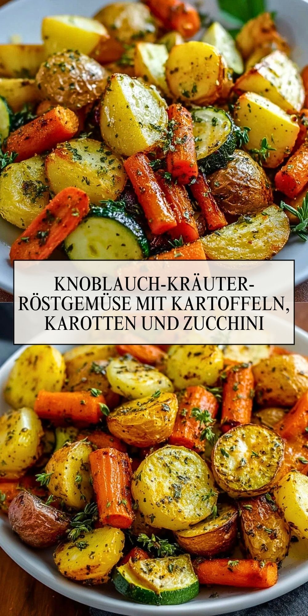 Dieses Knoblauch-Kräuter-Röstgemüse ist ein aromatisches Ofengericht aus goldbraunen Kartoffeln, süßen Karotten und frischer Zucchini, verfeinert mit Knoblauch und duftenden Kräutern. Perfekt als Beilage oder vegetarisches Hauptgericht – außen knusprig, innen herrlich zart. Schnell vorbereitet und voller Geschmack!