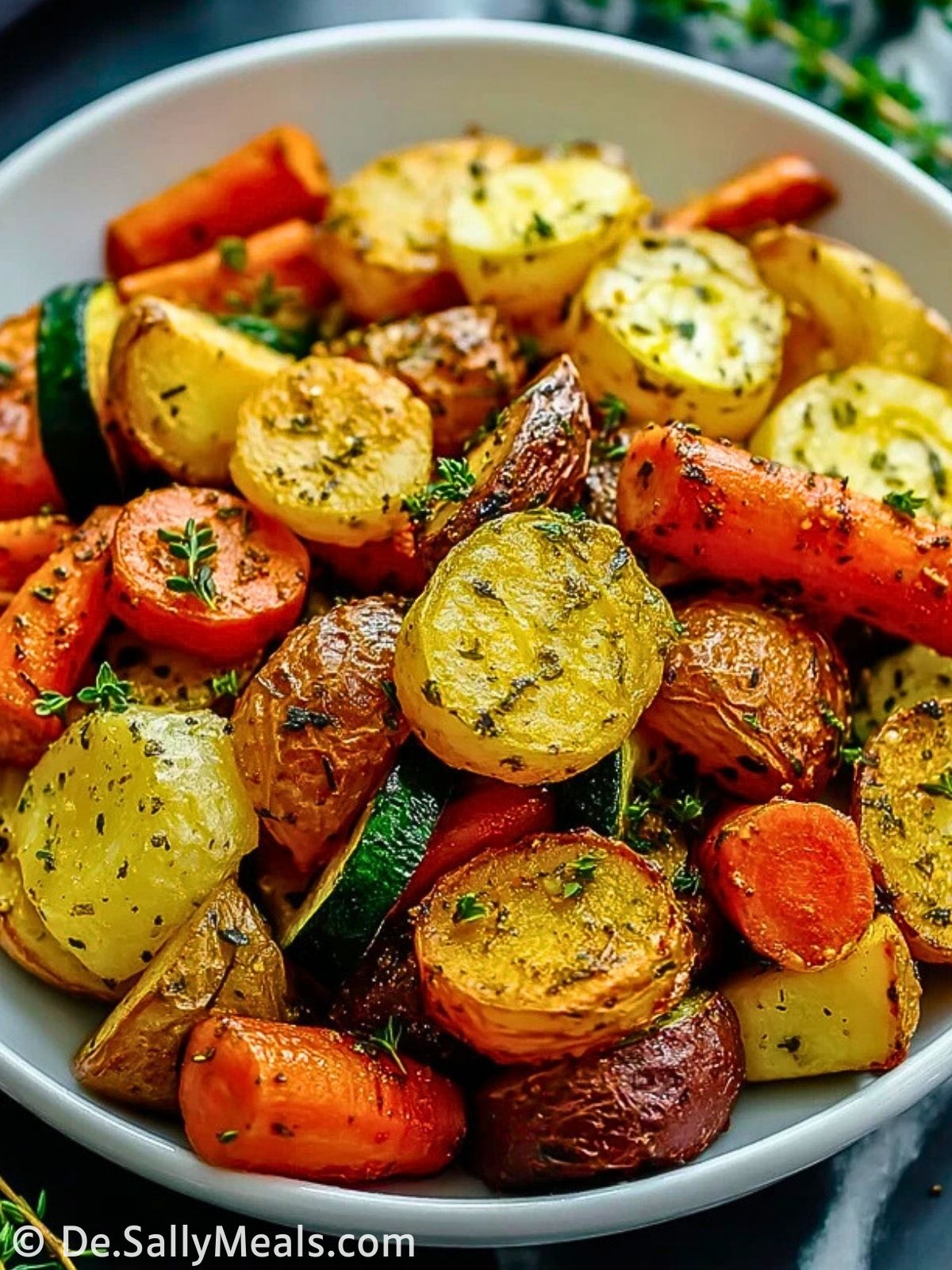 Knoblauch-Kräuter-Röstgemüse mit Kartoffeln, Karotten und Zucchini