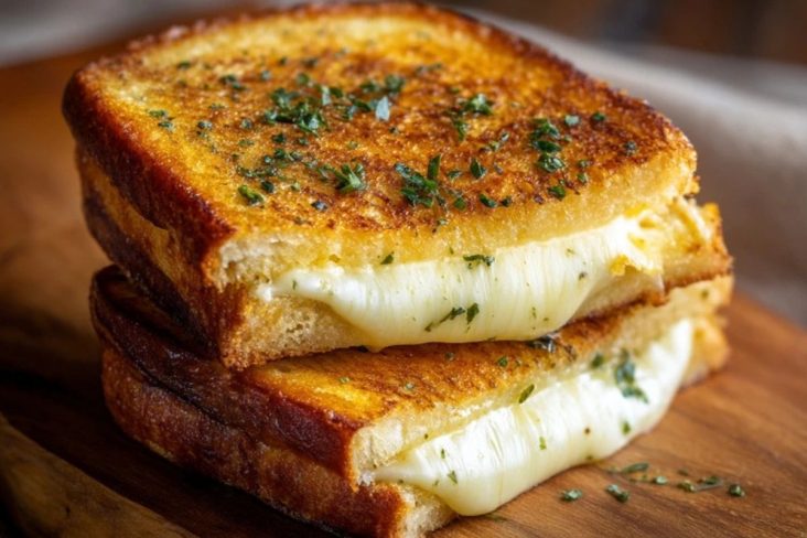 Ein Knoblauchbrot Käse-Sandwich ist die perfekte Kombination aus herzhaftem Käsebrot und würzigem Knoblauchgeschmack. Das goldbraun gebratene Brot, gefüllt mit zartschmelzendem Käse und aromatischer Knoblauchbutter, sorgt für einen Genussmoment, der an gemütliche Abende oder schnelle Mittagspausen erinnert. Schon der Duft, der beim Anbraten entsteht, macht sofort Appetit.