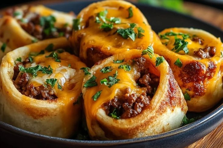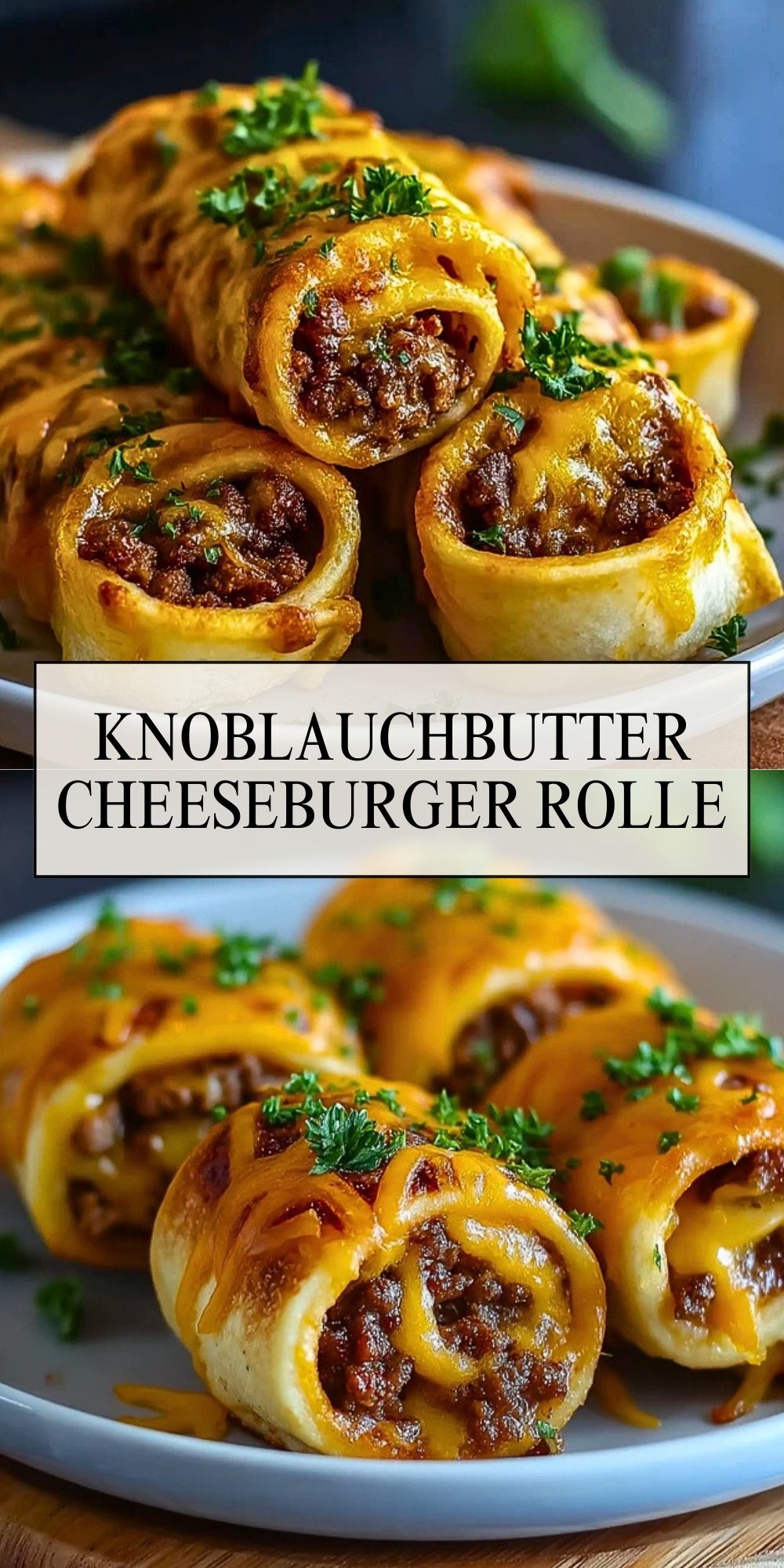 Saftiges Rinderhack, geschmolzener Cheddar und knuspriger Teig, getoppt mit aromatischer Knoblauchbutter – diese Cheeseburger-Rollen sind das ultimative Comfort Food! Perfekt als Snack, Partyfood oder schnelles Hauptgericht.