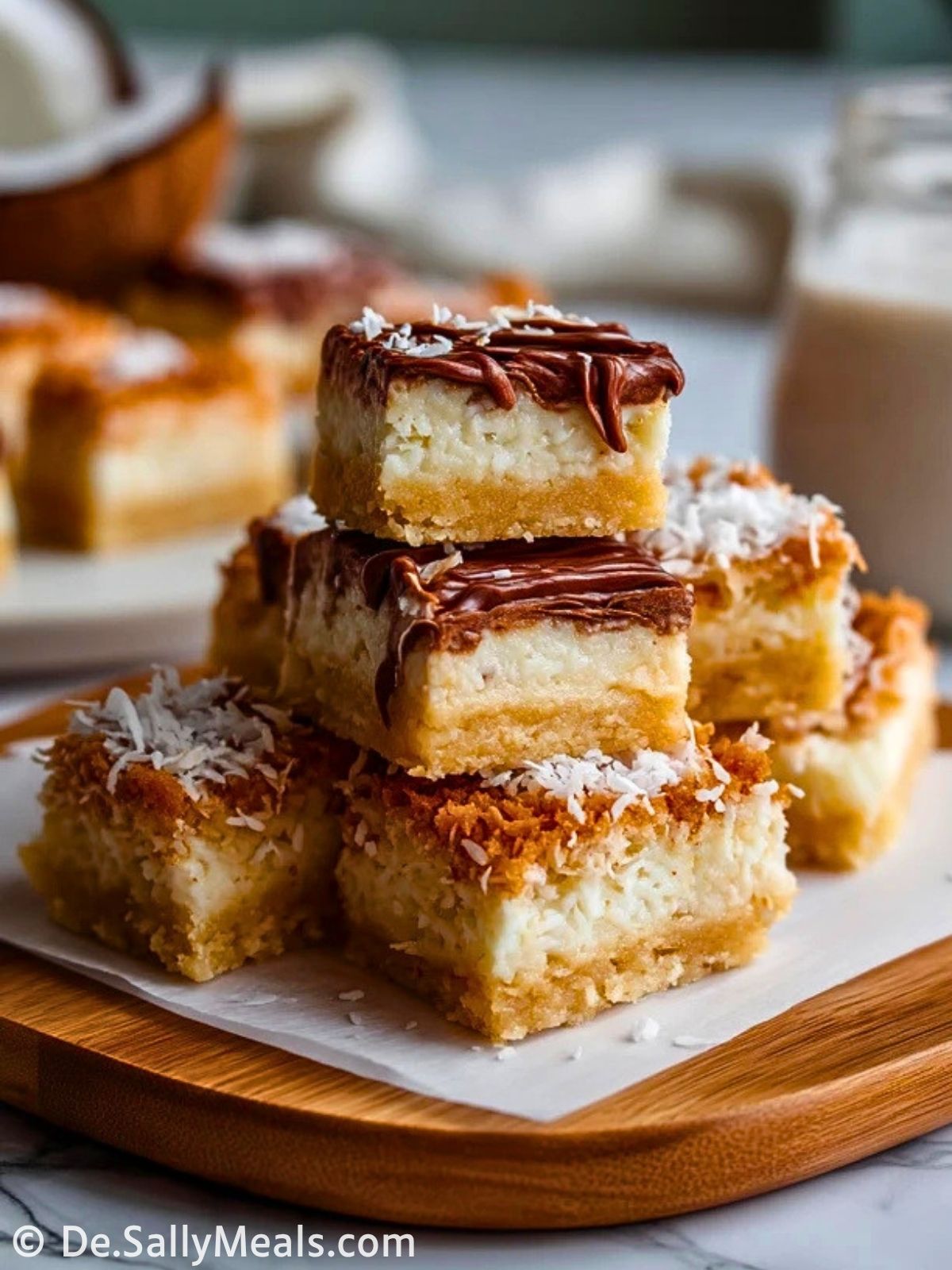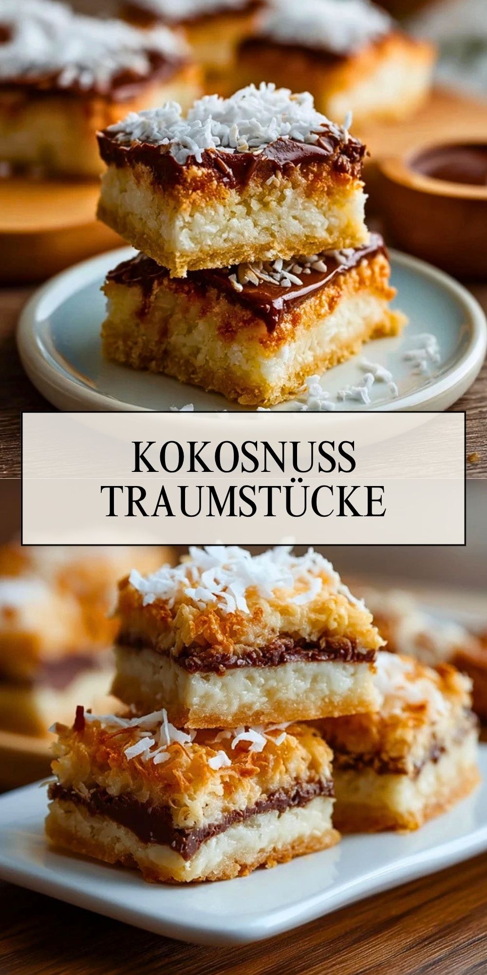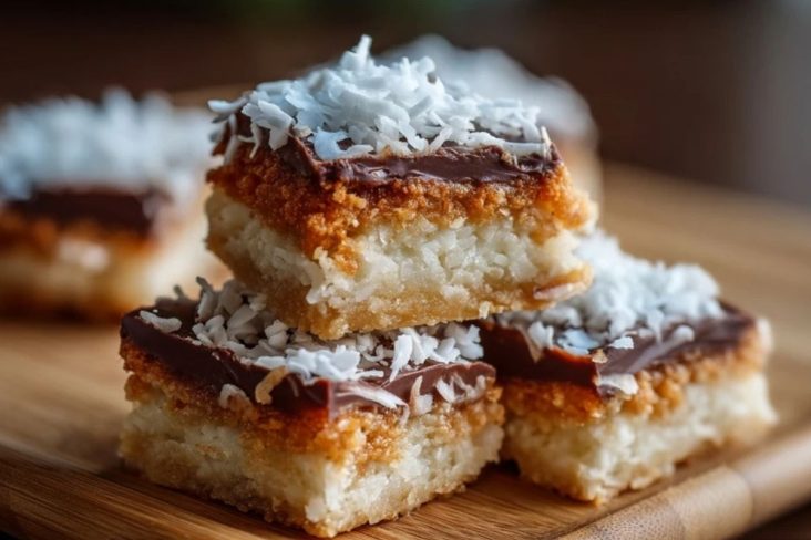 Kokosnuss Traumstücke sind saftige, zarte Kokosschnitten mit einem feinen Butterboden, einer süßen Kokosschicht und einem glänzenden Schokoladenbelag. Sie sind einfach zuzubereiten, lassen sich gut vorbereiten und passen perfekt zu Kaffee, für Buffets oder als süßer Vorrat im Kühlschrank.