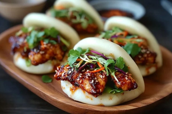 Koreanische Chicken Bao Buns sind fluffige, gedämpfte Hefebrötchen, gefüllt mit knusprigem, würzigem Hähnchen, frischem Gemüse und aromatischen Kräutern. Perfekt als Streetfood, Snack oder Highlight auf deiner nächsten Party – voller asiatischer Aromen und einfach unwiderstehlich!