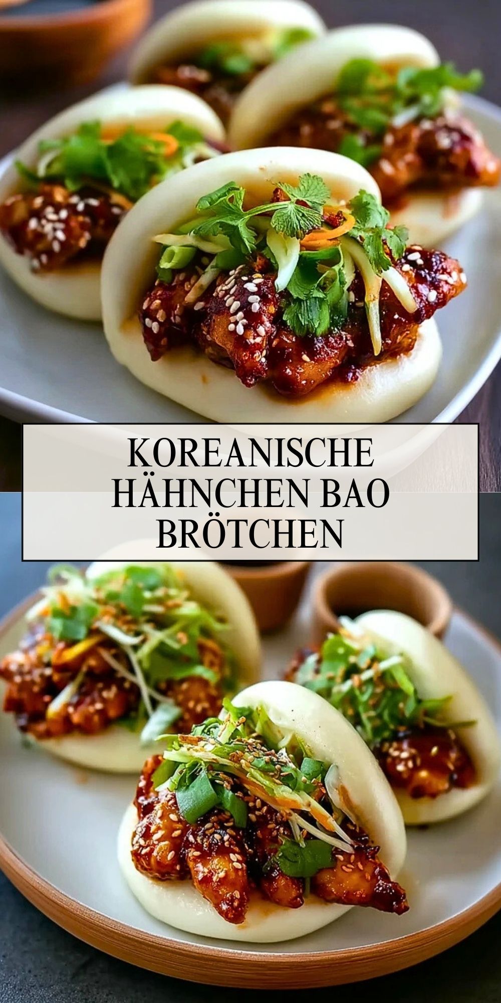 Weiche Bao-Brötchen, saftig glasiertes Hähnchen und knackiges Gemüse machen diese Koreanischen Hähnchen Bao Brötchen zu einem aromatischen Wohlfühlgericht mit besonderem Streetfood-Charakter. Die würzige Sauce mit Gochujang, Sojasauce, Honig und Ingwer sorgt für eine perfekte Balance aus Süße, Umami und milder Schärfe.