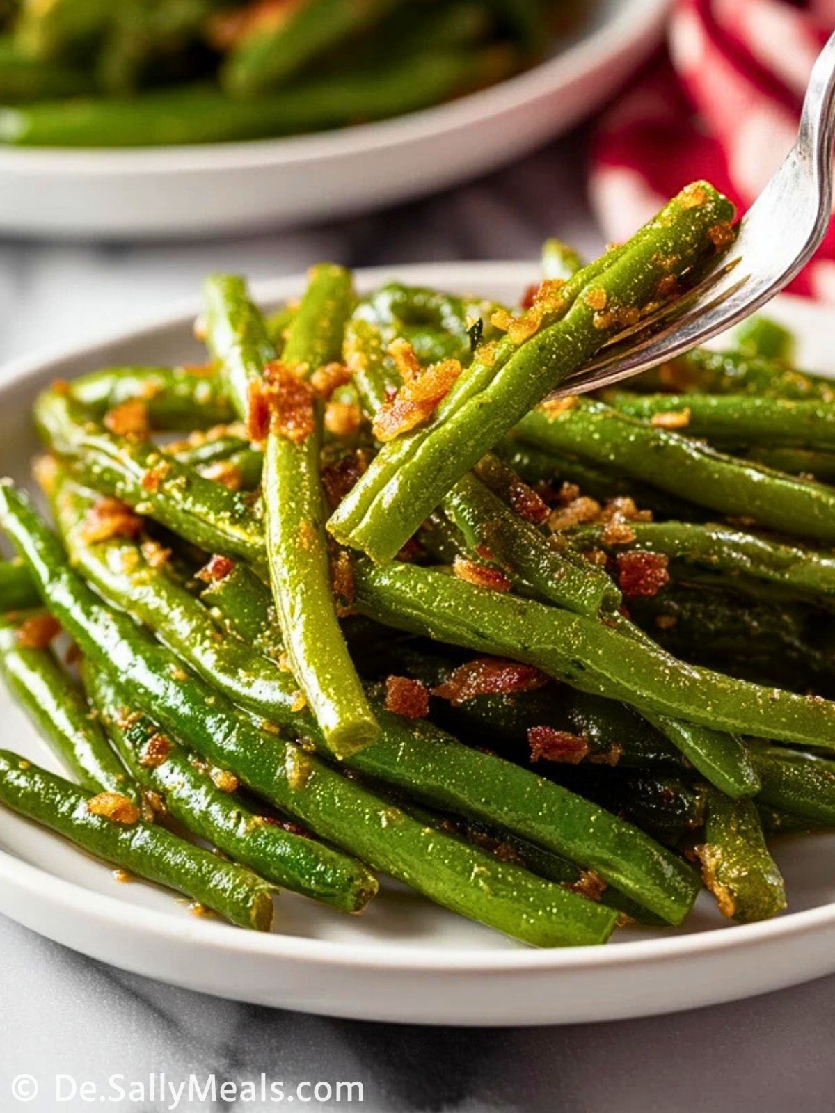 Gerade wenn du eine Gemüsebeilage suchst, die nicht langweilig wirkt, ist dieses Rezept eine wunderbare Wahl. Die Bohnen behalten ihre schöne Farbe, der Speck sorgt für Röstaromen, und mit einer kleinen, gut abgestimmten Würzung entsteht ein Gericht, das sowohl unter der Woche als auch auf einer festlichen Tafel überzeugt.