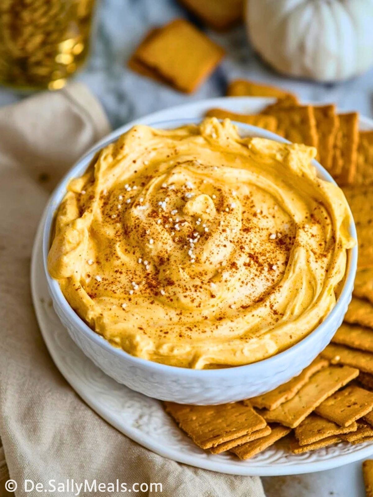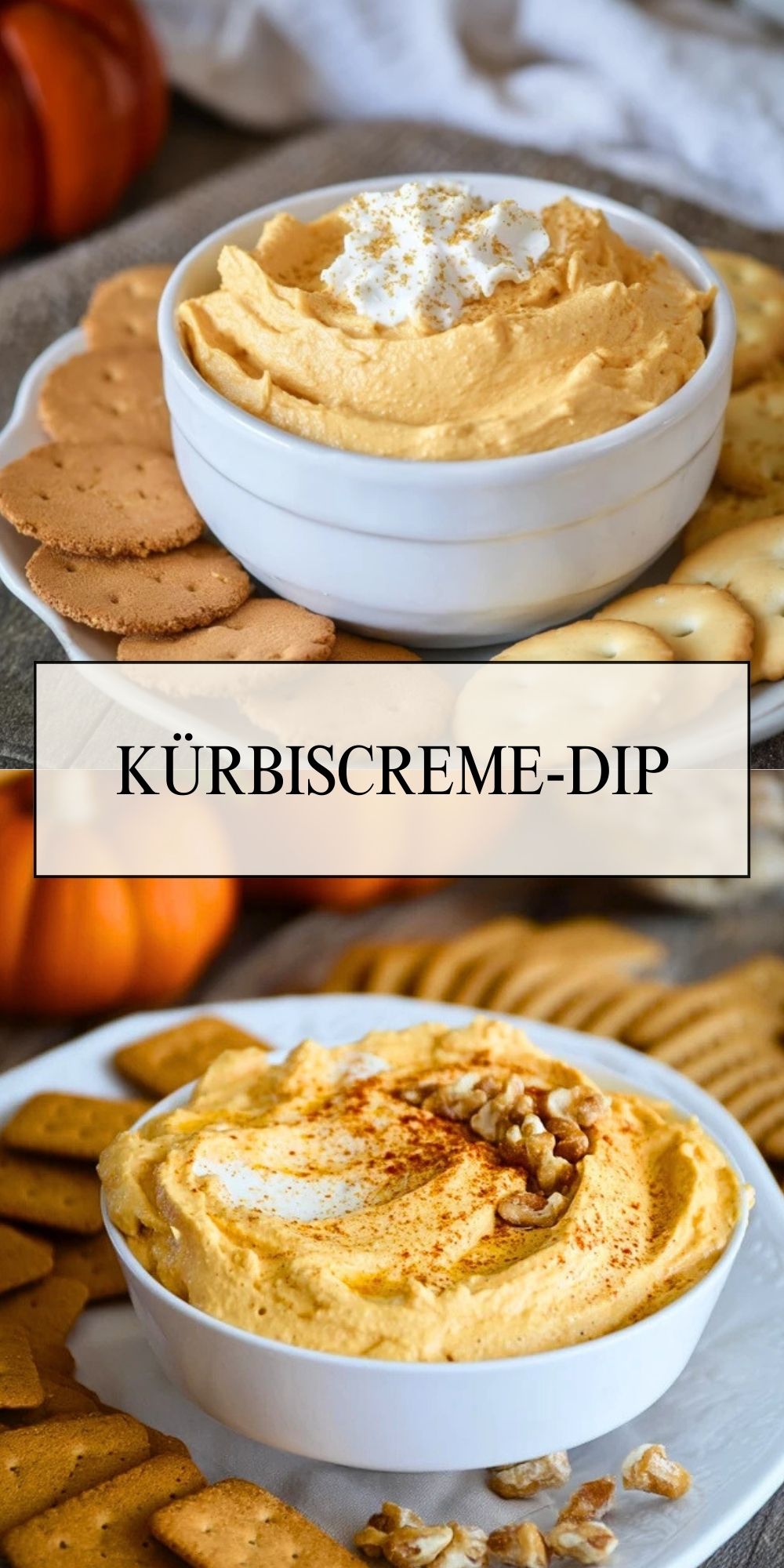 Ein cremiger, herbstlicher Kürbiscreme-Dip mit Frischkäse, Schlagsahne und aromatischen Gewürzen – perfekt als süßer Snack zu Keksen, Crackern oder frischem Obst und in wenigen Minuten ohne Backen zubereitet.