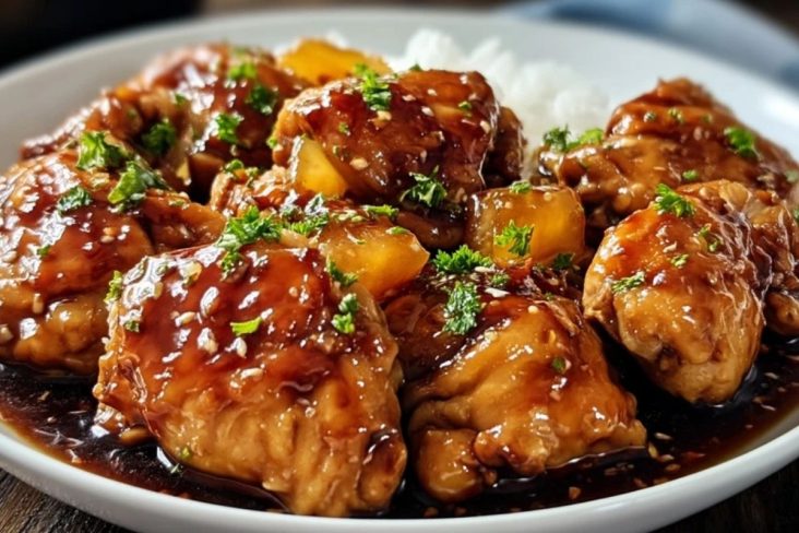 Der Slow Cooker sorgt dafür, dass das Hähnchen langsam und gleichmäßig gart, ohne auszutrocknen. Gleichzeitig bleibt die Ananas saftig und die Sauce bekommt Zeit, einzudicken und ein tiefes Karamellaroma zu entwickeln. Das Ergebnis ist eine harmonische Kombination aus süß, salzig und leicht herzhaft, die wunderbar zu lockerem Reis oder feinen Nudeln passt.
