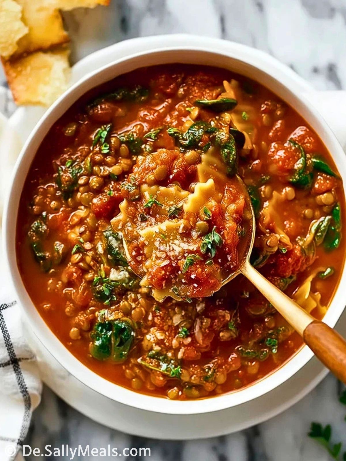 So bereitest du Linsen-Lasagne-Suppe zu