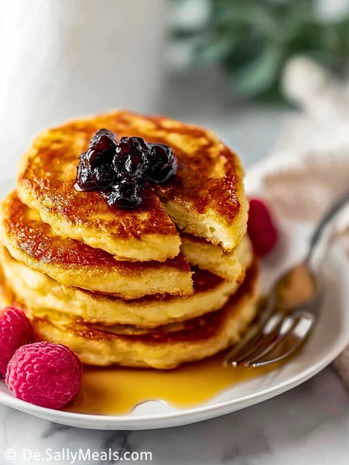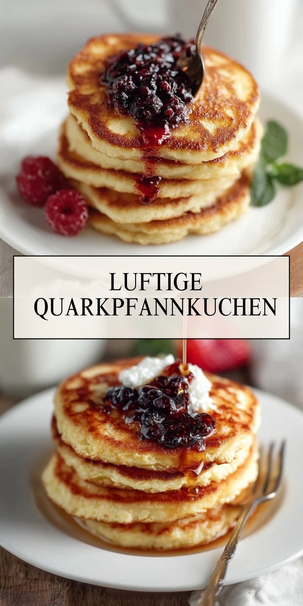 Luftige Quarkpfannkuchen sind die perfekte Mischung aus weichem Teig und cremigem Quark. Sie sind besonders fluffig, einfach zuzubereiten und ein Hit beim Frühstück oder Brunch. Mit frischen Früchten und Ahornsirup sind sie ein Genuss für die ganze Familie!