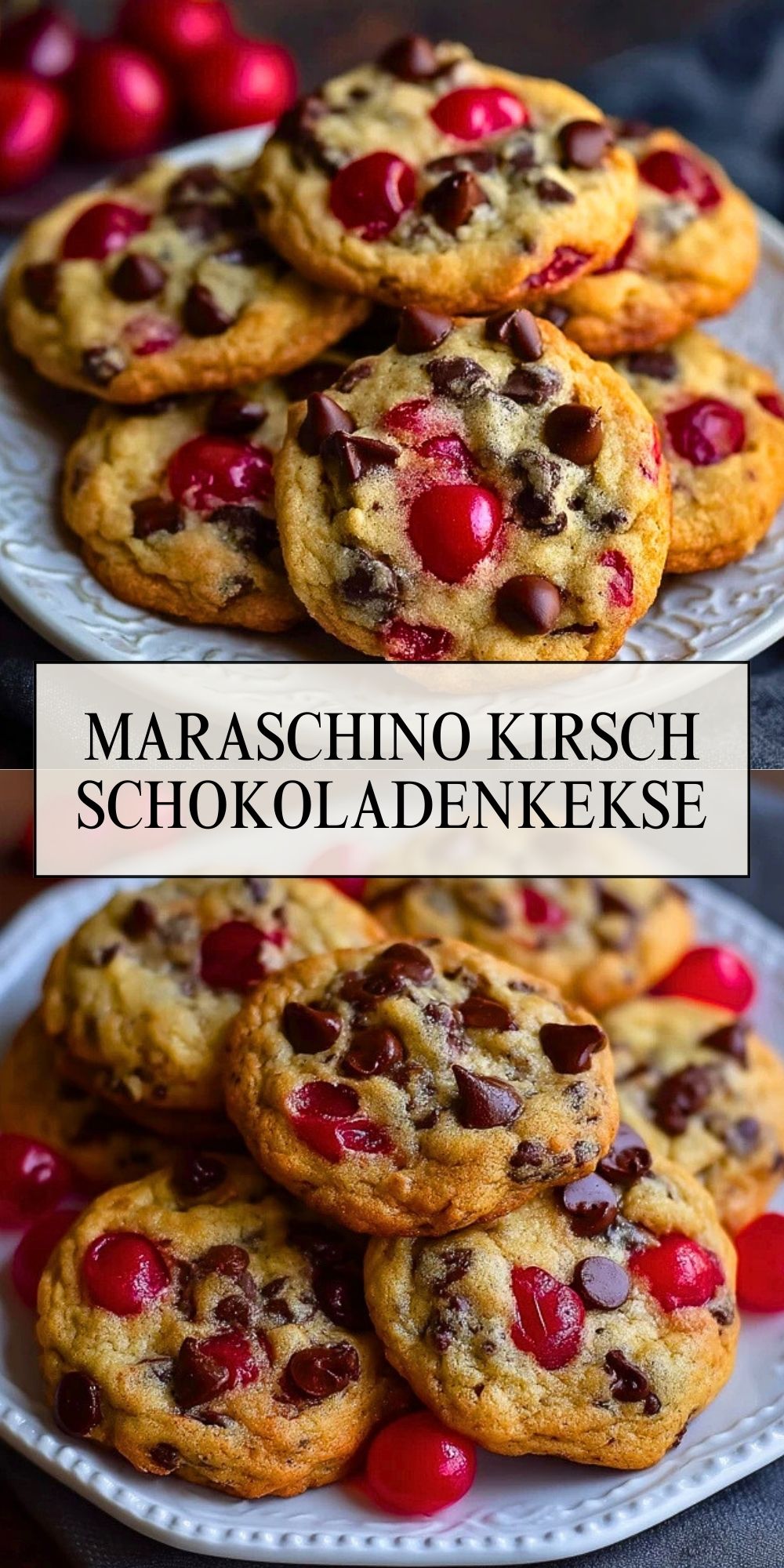Maraschino-Kirsch-Schokoladenkekse sind die Art von Gebäck, die sofort auffällt: saftige rote Kirschen, zart schmelzende Schokostückchen und ein weicher, goldener Keksteig, der beim Backen ein herrlich süßes Aroma in der Küche verbreitet. Sie verbinden den vertrauten Komfort klassischer Chocolate-Chip-Cookies mit einer fruchtigen Note, die jeden Bissen spannender macht.