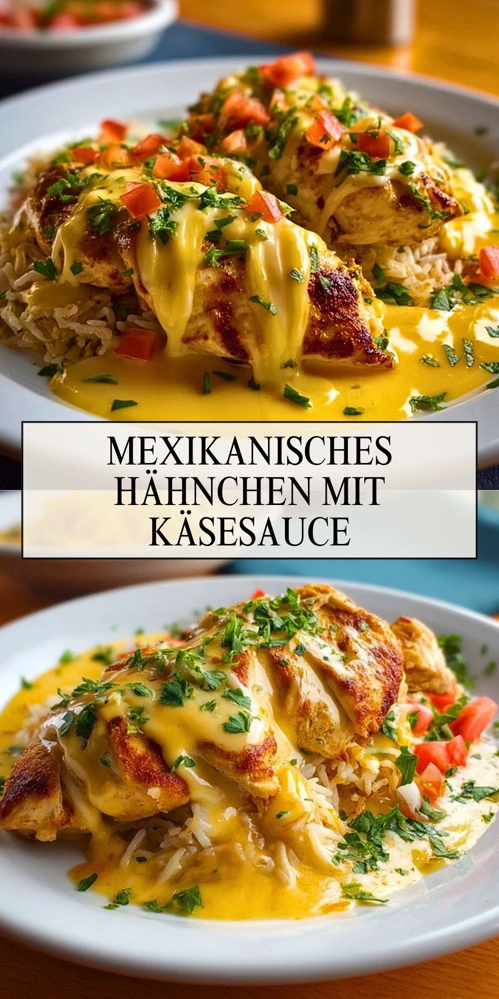 Saftig gebratenes Hähnchen, locker gegarter Reis und eine cremige Käsesauce machen dieses Gericht zu einem echten Wohlfühlessen mit würziger Note. Mexikanisches Hähnchen mit Käsesauce verbindet kräftige Gewürze mit einer milden, samtigen Sauce, die sich wunderbar über das Fleisch und die Beilage legt.