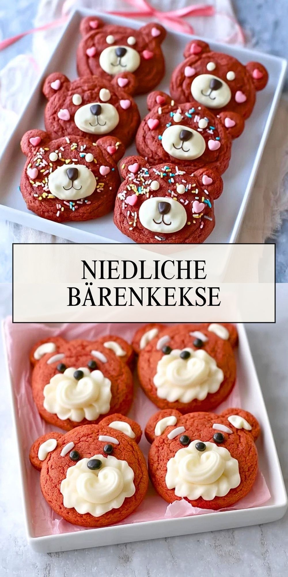 Diese niedlichen Bärenkekse sind weich, schokoladig und ein wunderschöner Blickfang für jede Keksdose. Mit ihren kleinen Ohren und den liebevoll dekorierten Gesichtern eignen sie sich perfekt für Geburtstage, Feiertage, Geschenktüten oder einfach für einen gemütlichen Backnachmittag. Der Teig ist einfach zuzubereiten und lässt sich sowohl in klassischem Braun als auch in einer roten Variante backen. So entstehen charmante Kekse, die fast zu süß zum Essen sind – aber eben nur fast.