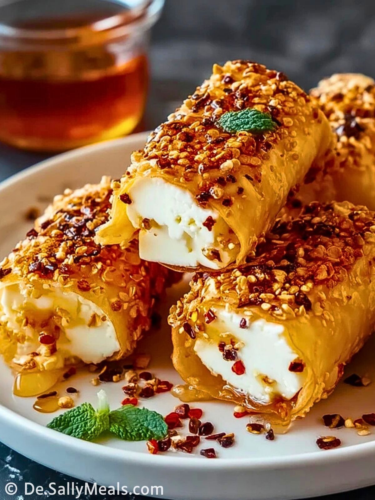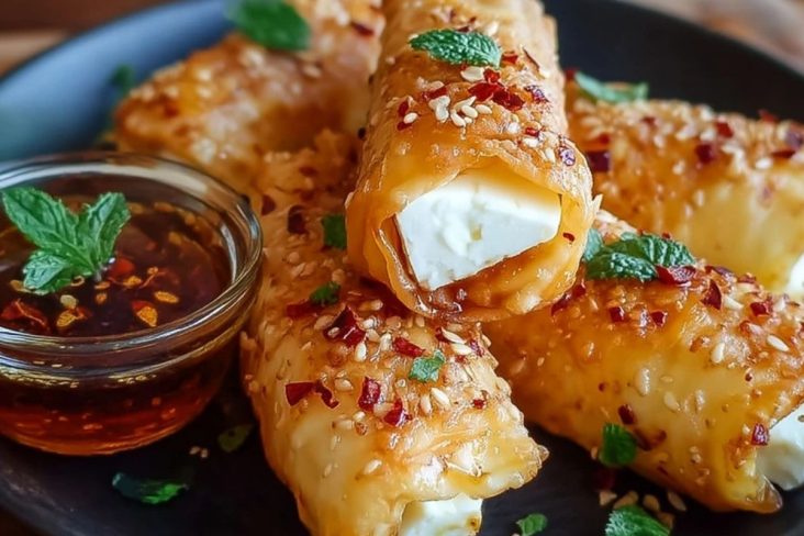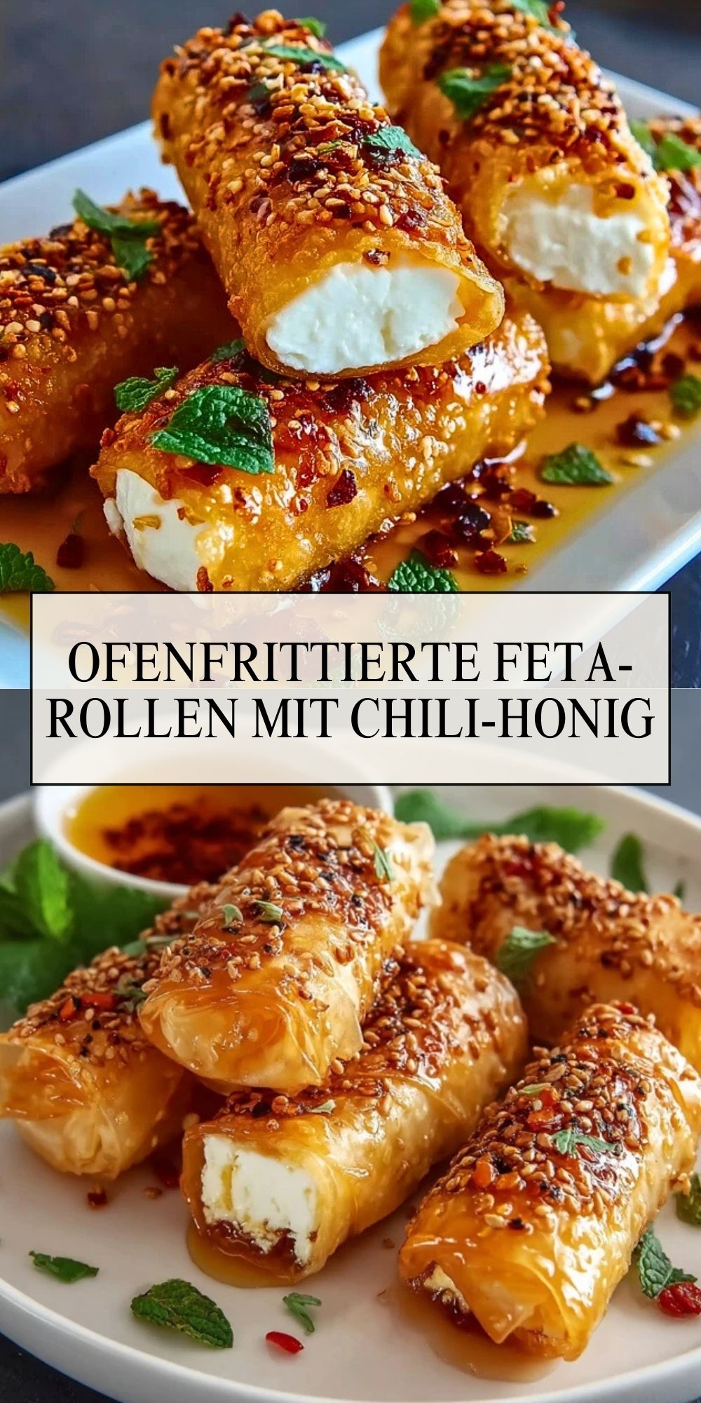 Ofenfrittierte Feta-Rollen mit Chili-Honig