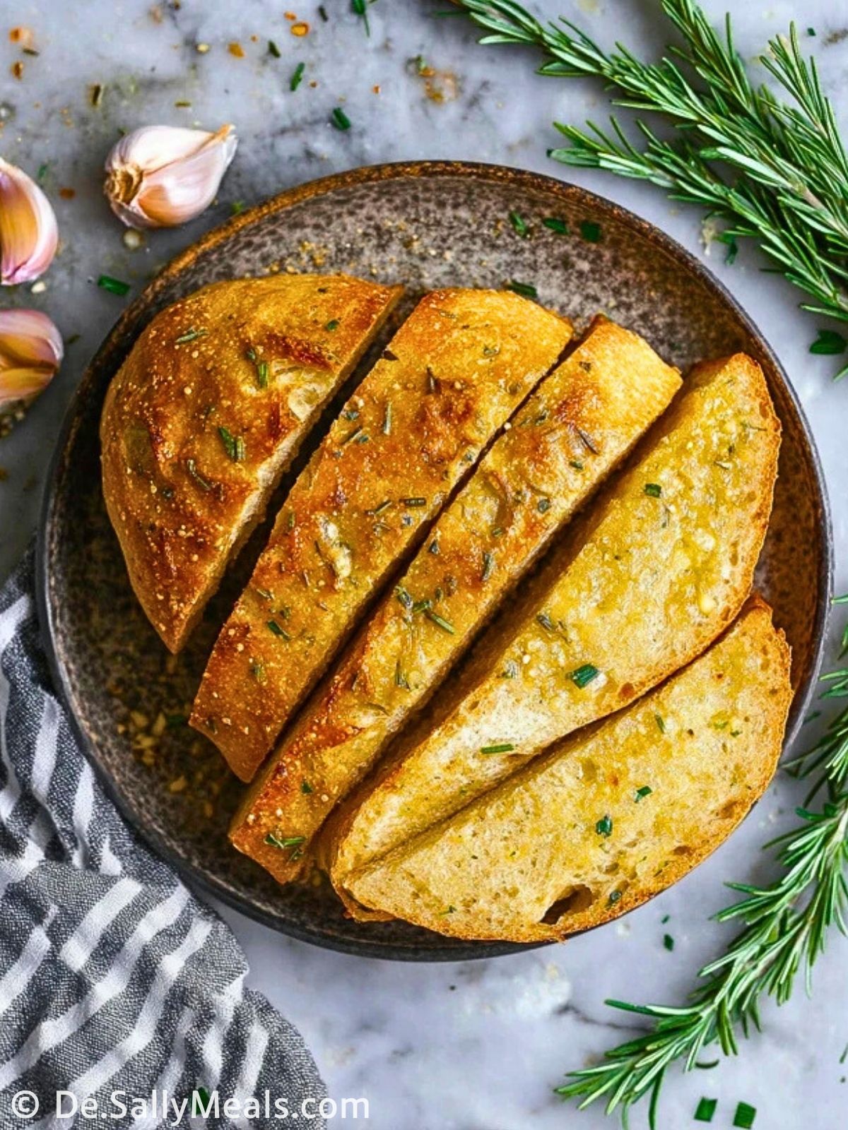 Ohne-Kneten Rosmarin-Knoblauchbrot