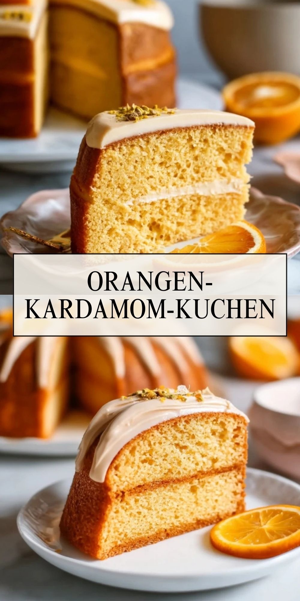 Saftiger Orangen-Kardamom-Kuchen mit Frischkäse-Glasur. Frische Orangen und aromatischer Kardamom machen diesen Kuchen wunderbar saftig, locker und besonders aromatisch. Perfekt für jede Jahreszeit und als Highlight auf der Kaffeetafel.
