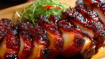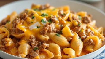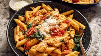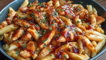 Eintopf mit zartem Honig-Barbecue-Hühnchen und Penne
