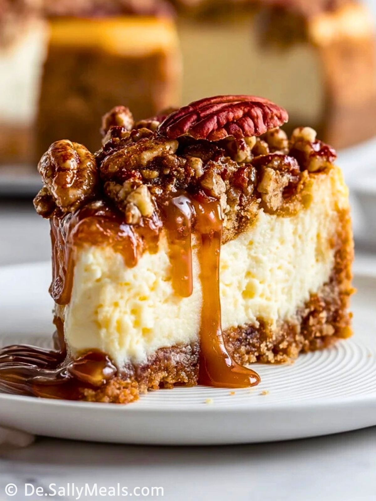 Ziehe vor dem Servieren etwas zusätzliche Karamellsauce über das Pekannuss-Topping für ein besonders dekoratives Finish.