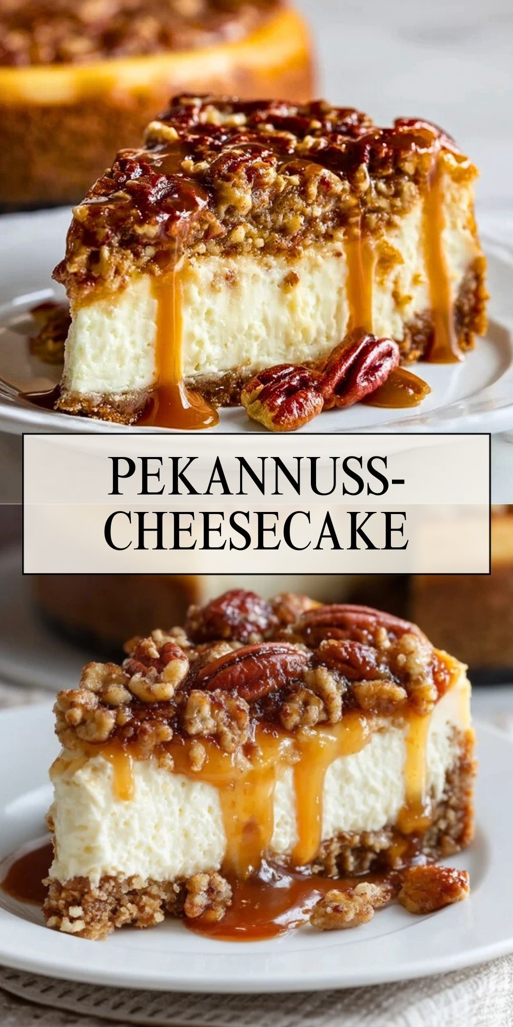 Ein cremiger Cheesecake mit buttrigem Keksboden und einer goldenen Schicht karamellisierter Pekannüsse – perfekt für besondere Anlässe oder als Genussmoment zwischendurch.
