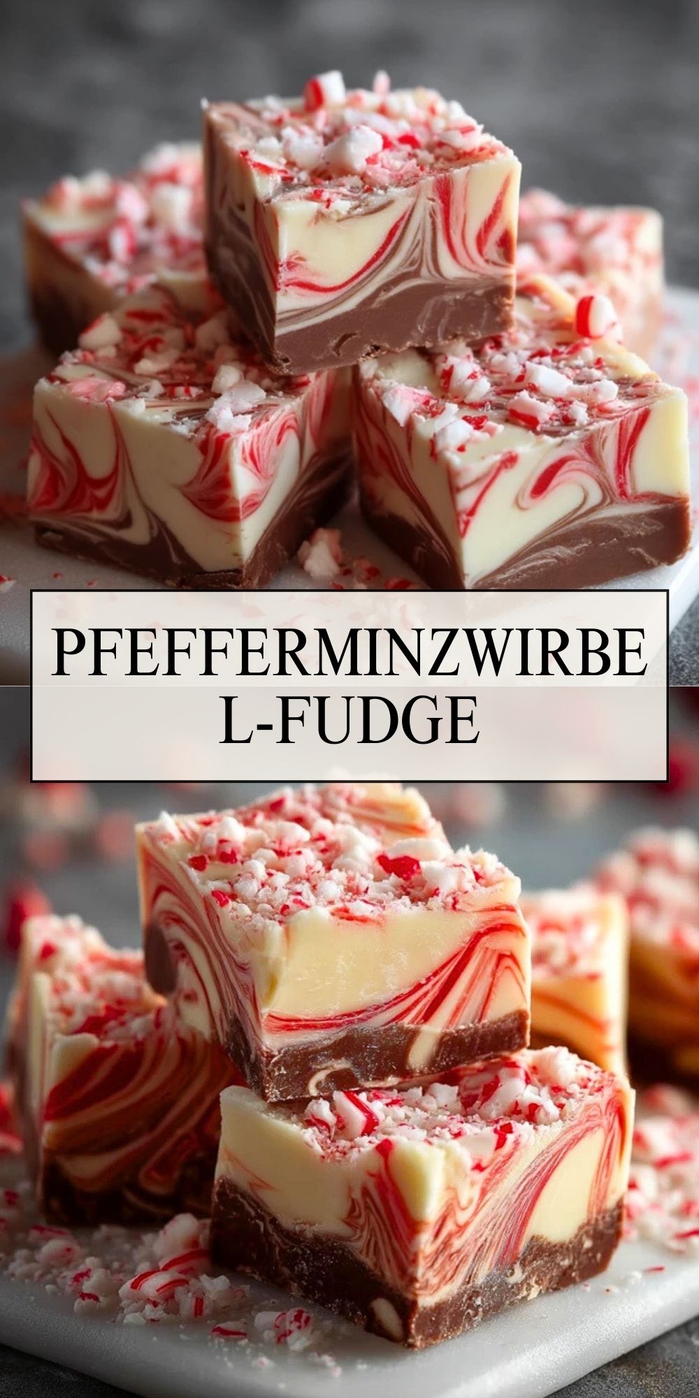 Ein festlich-cremiger Fudge mit wunderschöner Marmorierung aus weißer und Zartbitterschokolade, verfeinert mit frischer Pfefferminznote und knusprigen Zuckerstangen – perfekt für die Adventszeit oder als Geschenk.