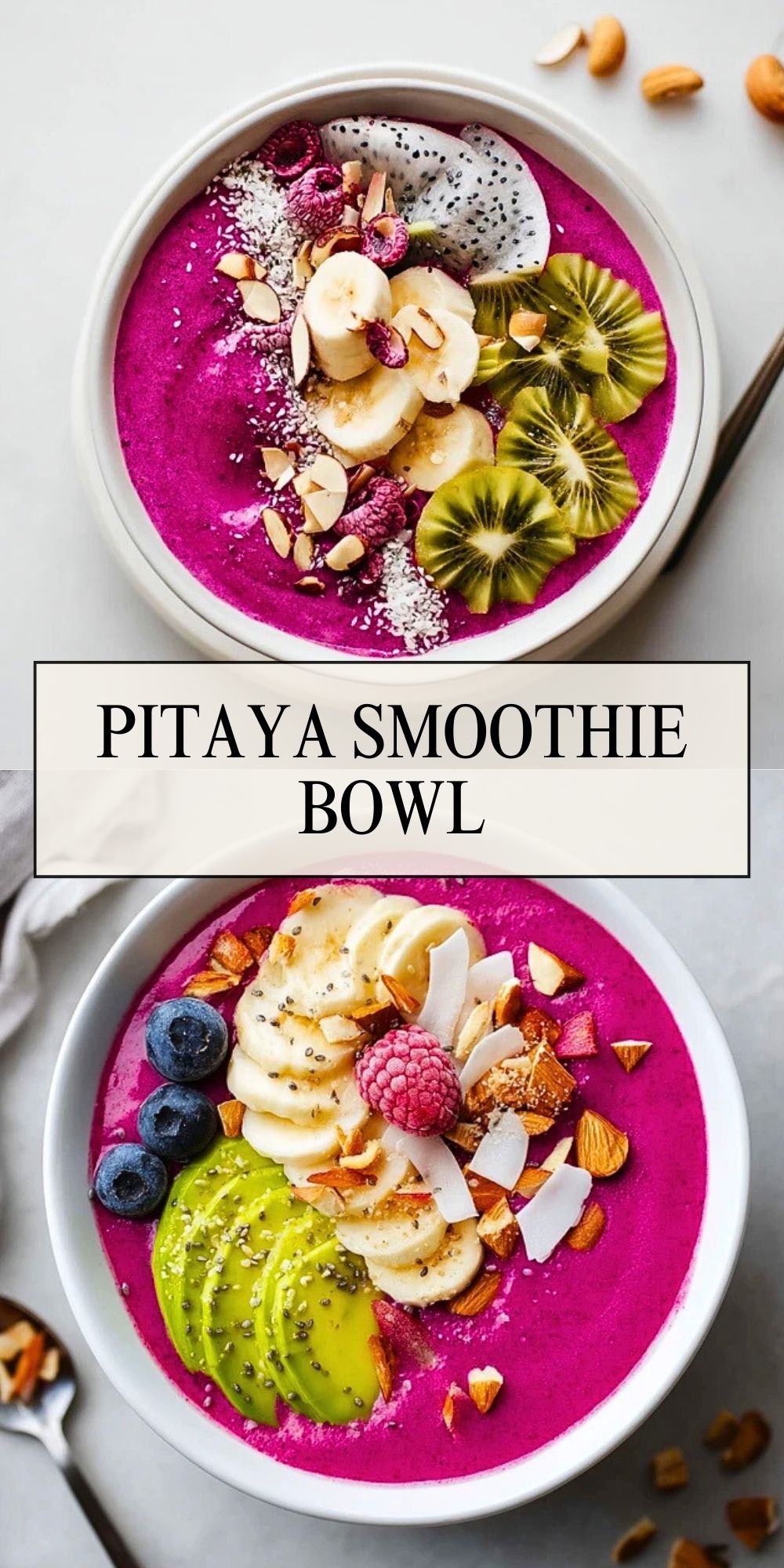 Die Pitaya Smoothie Bowl ist eine tropische, farbenfrohe Frühstücksoption voller Vitamine, Antioxidantien und Geschmack. Cremige Basis aus Drachenfrucht, Banane und Mango trifft auf knackige Toppings und bringt gute Laune in jeden Tag.