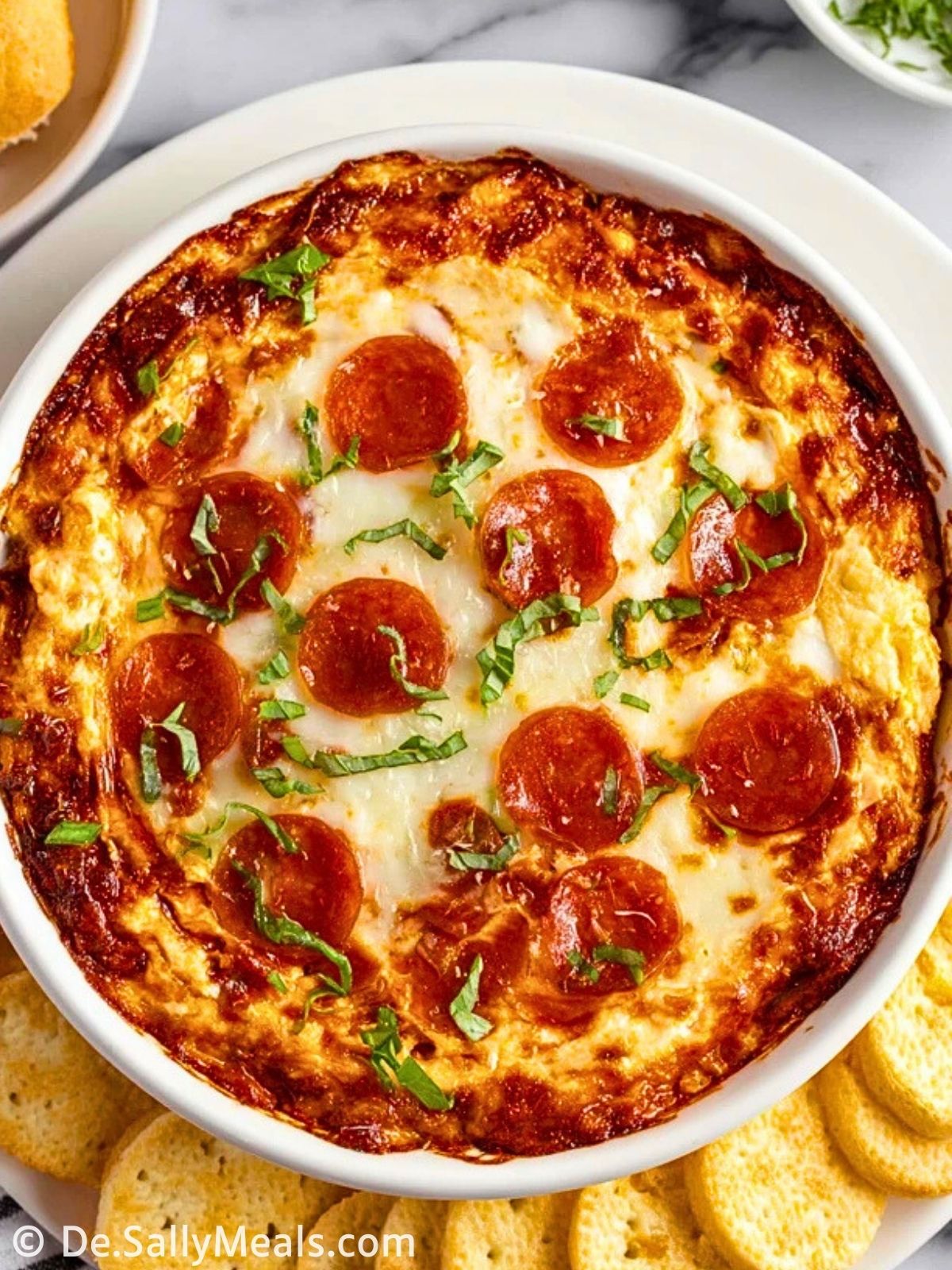 Cremiger, heiß überbackener Dip im Pizza-Stil mit Mozzarella, würziger Tomatensauce und Peperonisalami – perfekt für jede Party oder den gemütlichen Abend zuhause. Schnell vorbereitet und immer ein Hit!