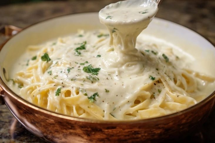 Reichhaltige und cremige selbstgemachte Alfredo-Sauce ist eine schnelle, elegante Sauce aus Butter, Sahne, Parmesan und Knoblauch, die jede Pasta in ein besonders cremiges Wohlfühlgericht verwandelt. Sie gelingt mit wenigen Zutaten, schmeckt intensiv und lässt sich wunderbar mit Fettuccine, Hähnchen oder Gemüse kombinieren.