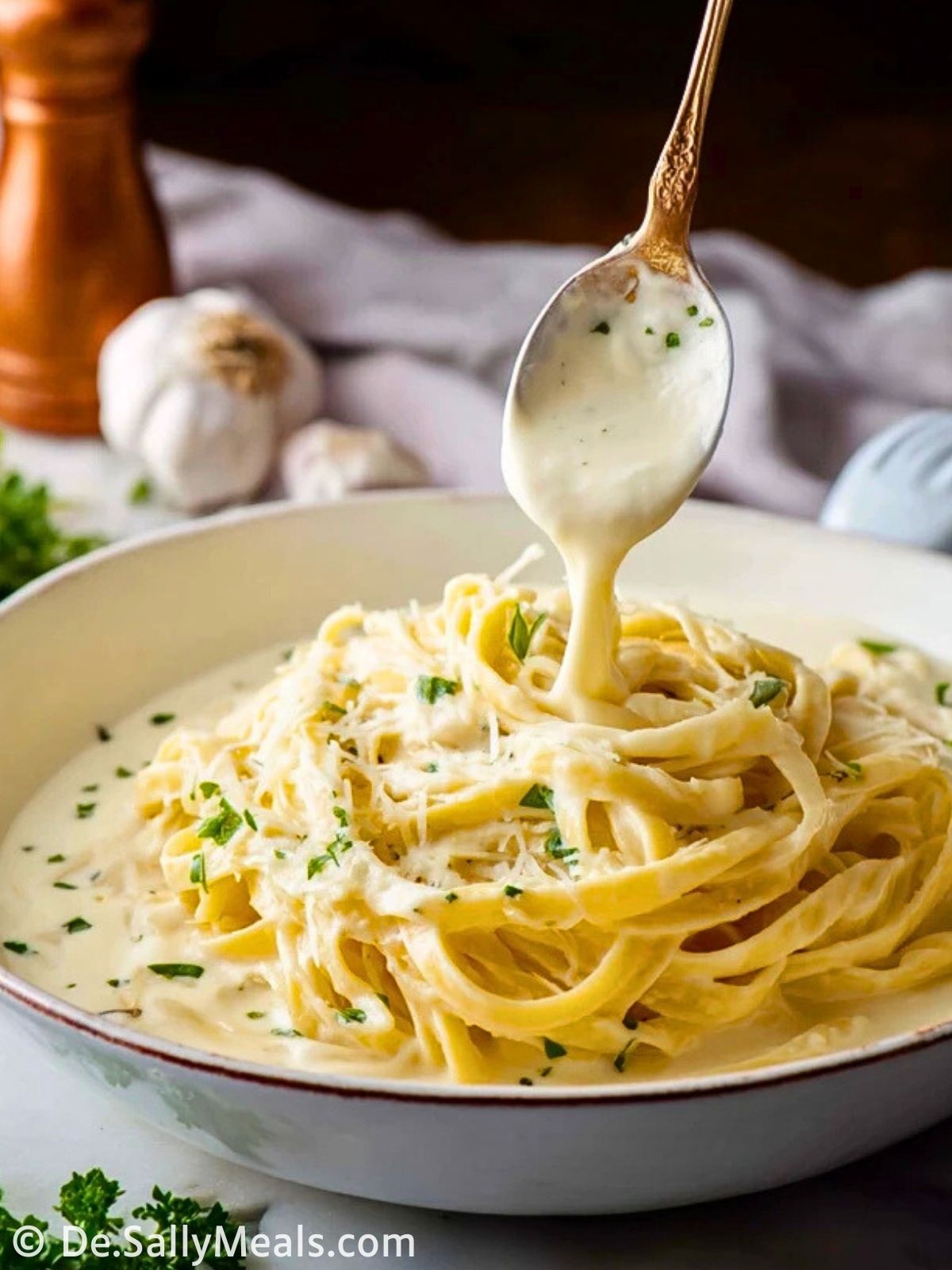 So bereitest du Reichhaltige und Cremige Selbstgemachte Alfredo-Sauce zu