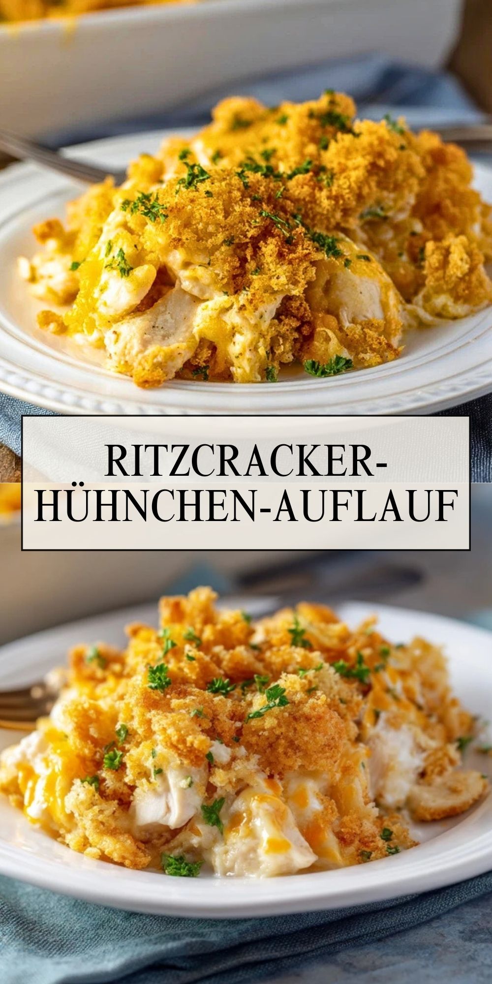 Cremiger Ritzcracker-Hühnchen-Auflauf mit zartem Hähnchen, buttriger Knusperkruste und würzigem Käse. Perfekt für Familienabende und einfach vorzubereiten!