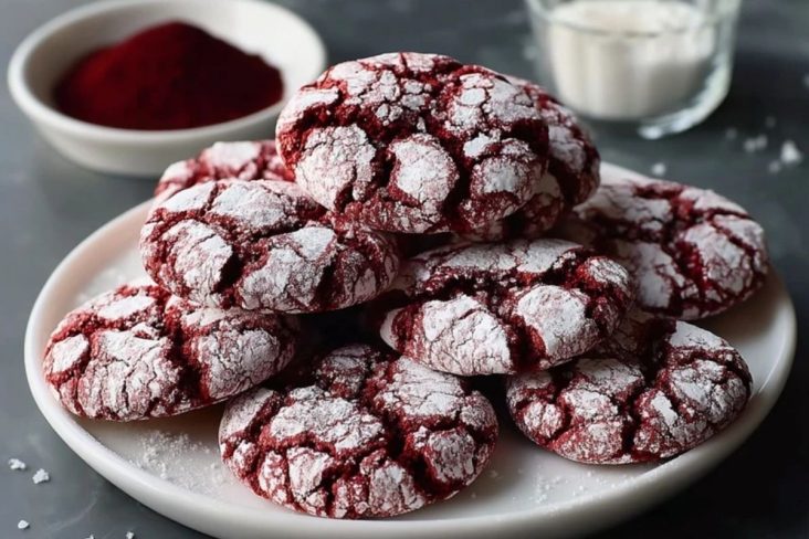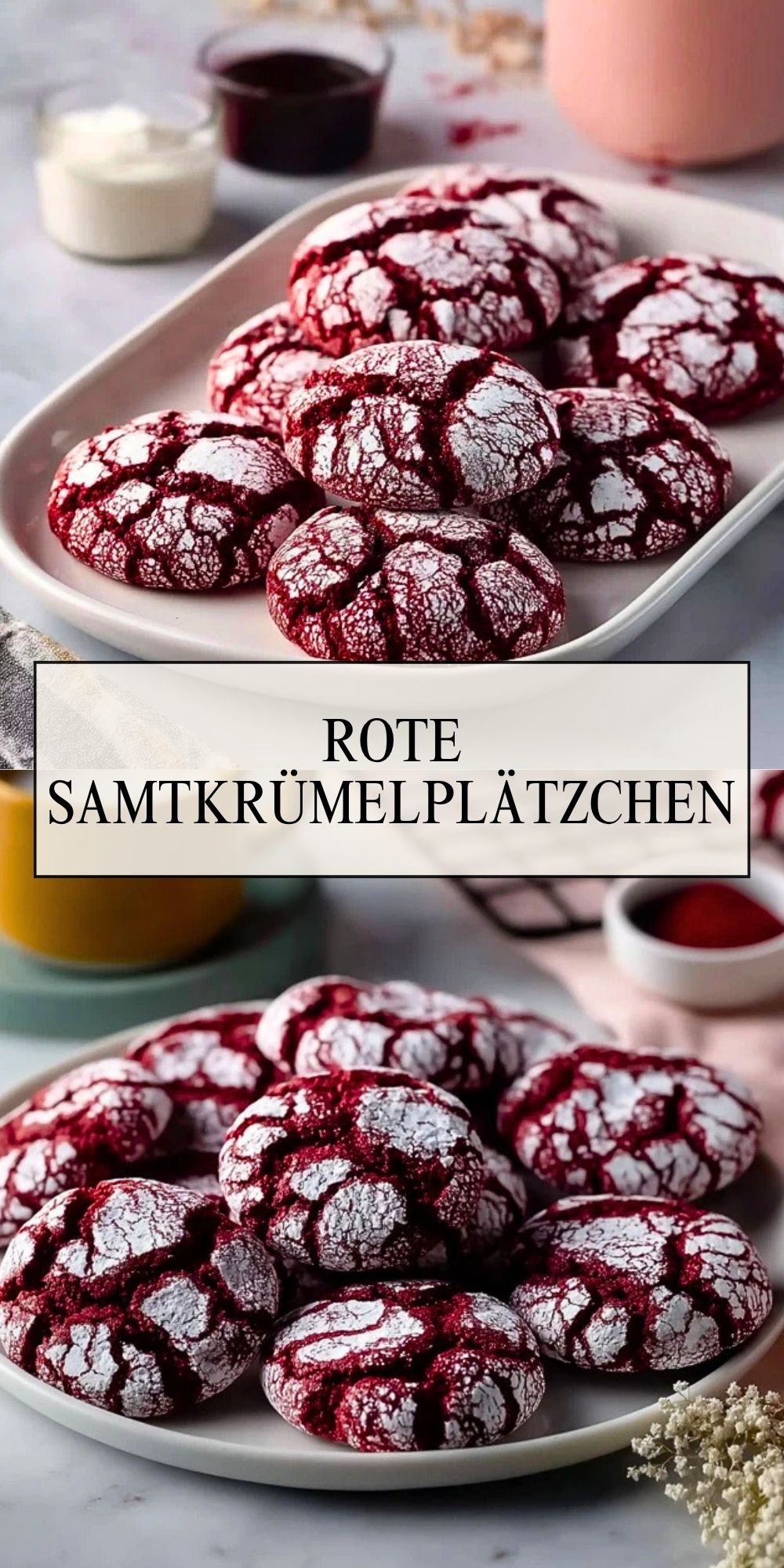Rote Samtkrümelplätzchen sind genau das Richtige, wenn du weiche, leicht schokoladige Kekse mit einem festlichen Look liebst. Ihre leuchtend rote Farbe, die feinen Risse an der Oberfläche und die zarte Hülle aus Puderzucker machen sie zu einem echten Hingucker auf jedem Plätzchenteller. Innen bleiben sie angenehm weich, außen sorgt die feine Kruste für den typischen Crinkle-Effekt.