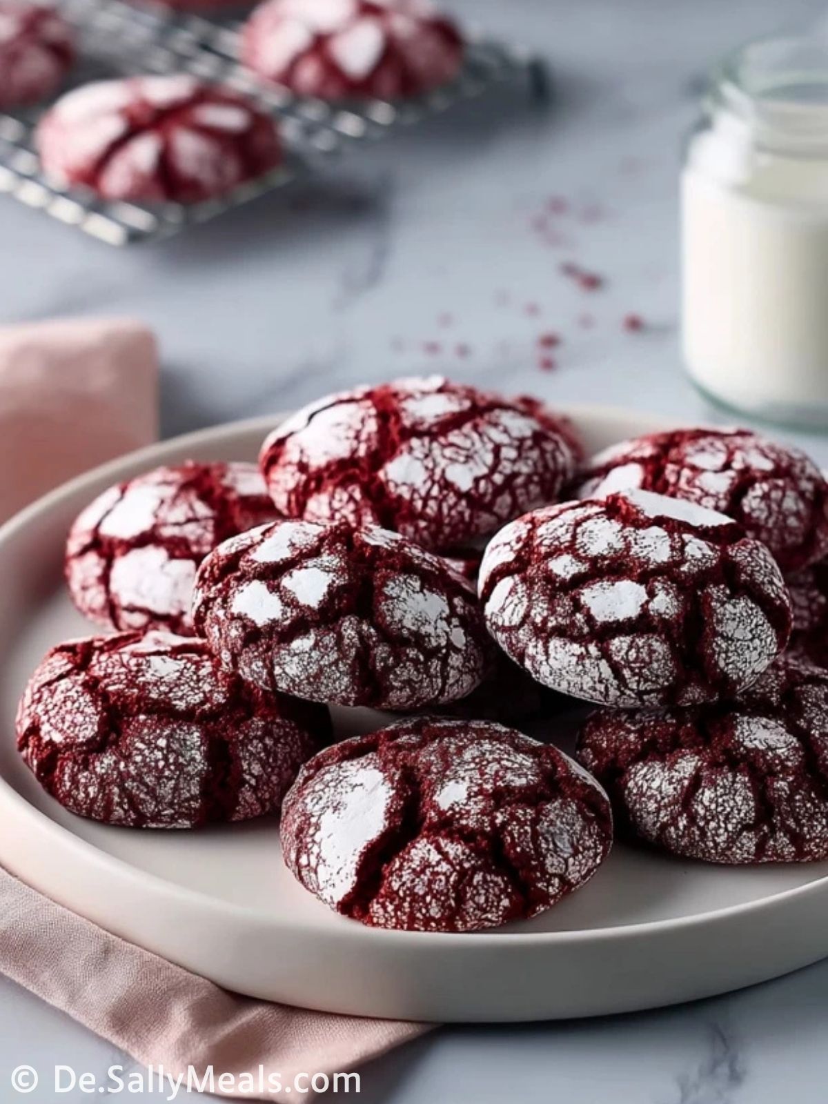 Weiche, auffällige und zart schokoladige Plätzchen mit dem typischen Crinkle-Look. Außen sorgt eine feine Puderzuckerschicht für die schöne rissige Oberfläche, innen bleiben sie angenehm soft und saftig. Sie sind ideal für festliche Anlässe, zum Verschenken oder einfach dann, wenn du etwas Besonderes backen möchtest.
