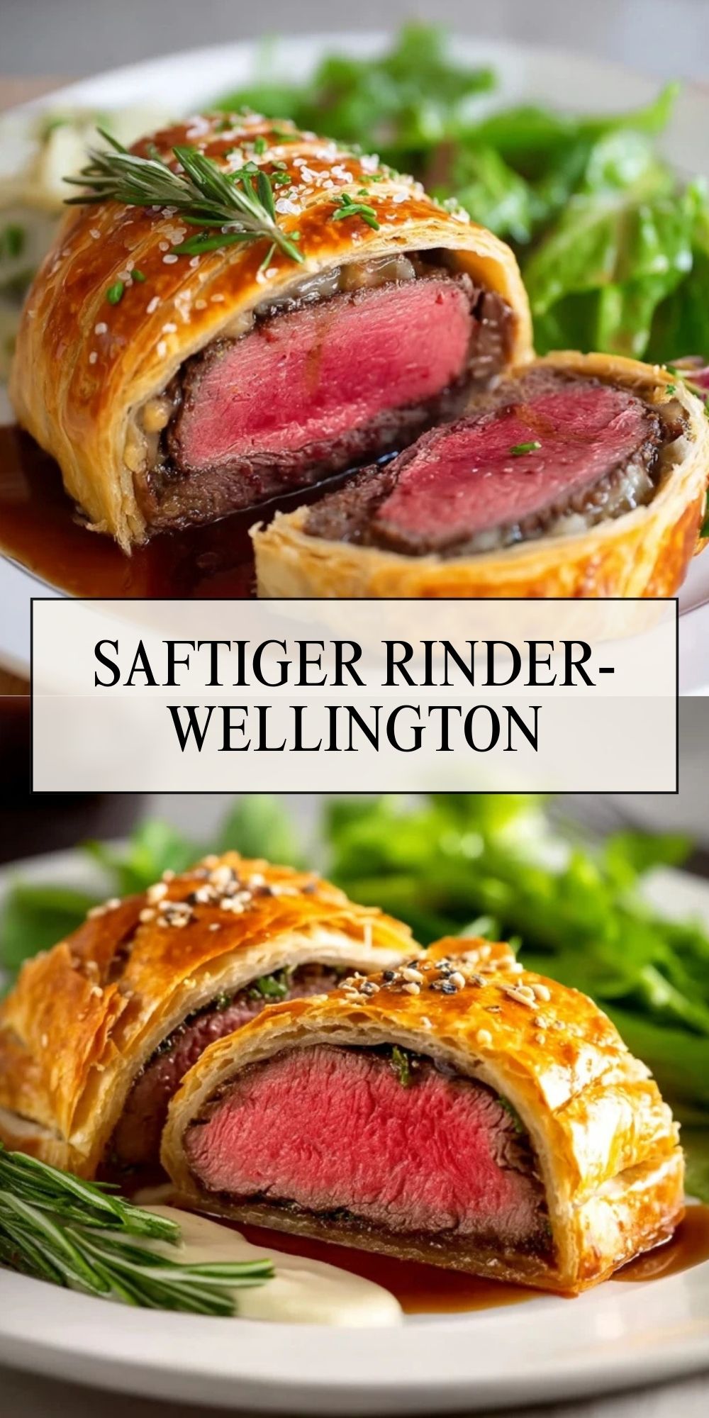 Ein saftiger Rinder-Wellington ist ein Festessen der Extraklasse und sorgt garantiert für bewundernde Blicke am Tisch. Zartes Rinderfilet, umhüllt von würzigen Pilzen, Schinken und knusprigem Blätterteig – dieses Gericht ist eine echte Krönung für besondere Anlässe wie Weihnachten, Silvester oder ein feines Sonntagsessen.