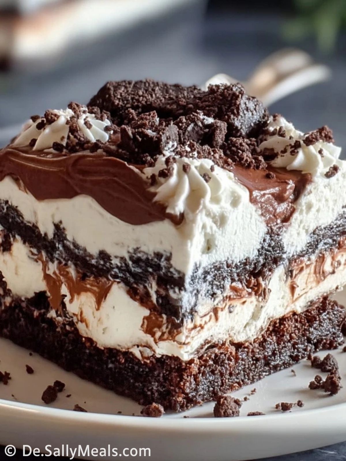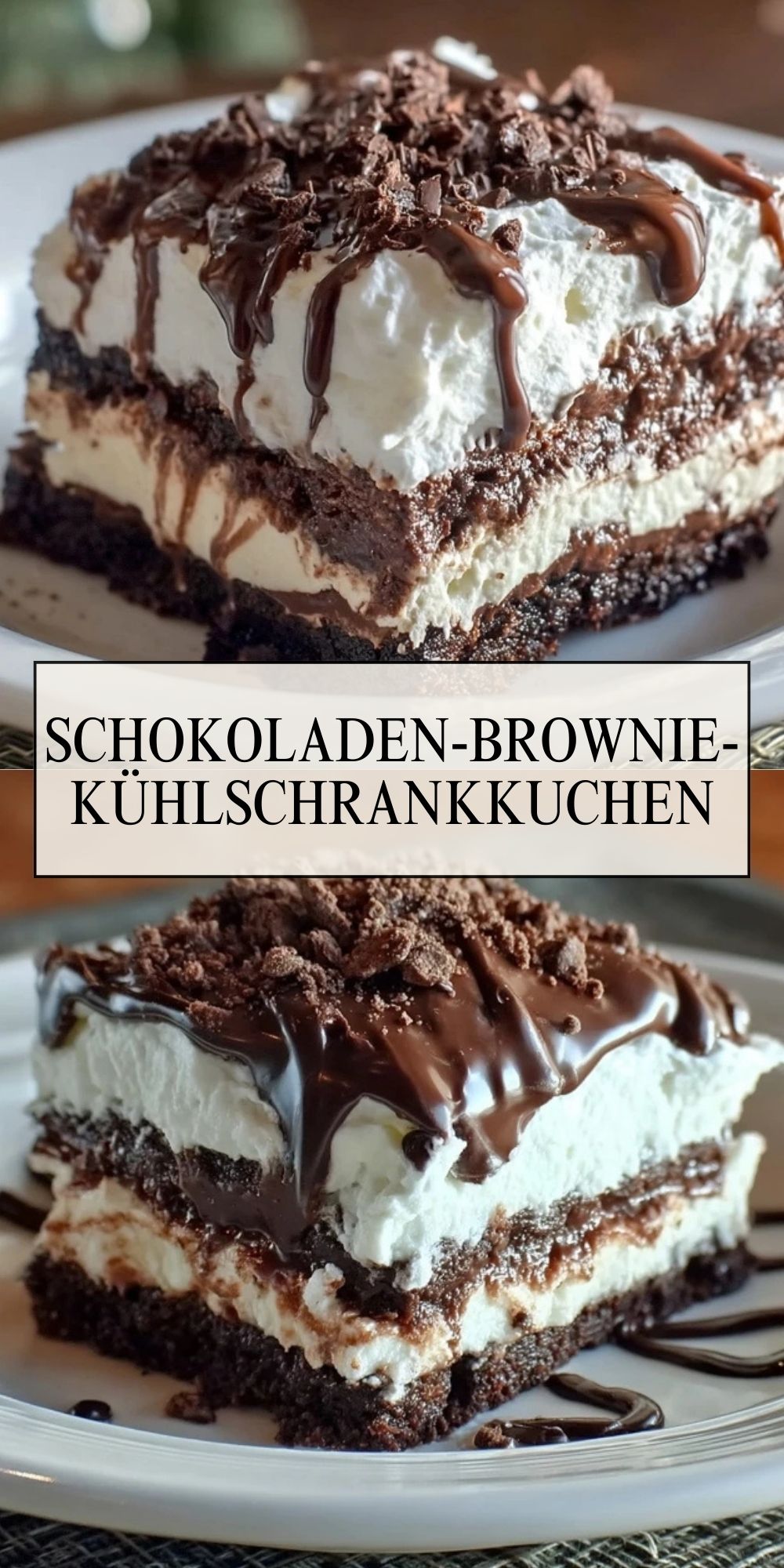Dieser Schokoladen-Brownie-Kühlschrankkuchen vereint einen fudgy Brownieboden, cremige Schokoladenmousse und eine fluffige Sahneschicht zu einem unwiderstehlichen Dessert, das ganz ohne Backen auskommt. Perfekt für heiße Tage und festliche Anlässe!