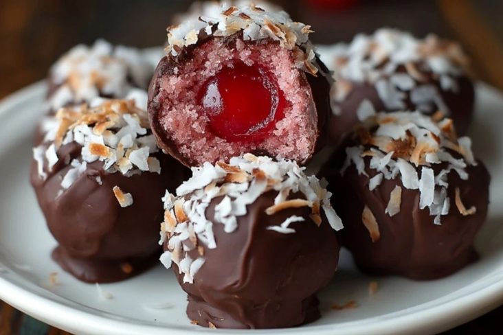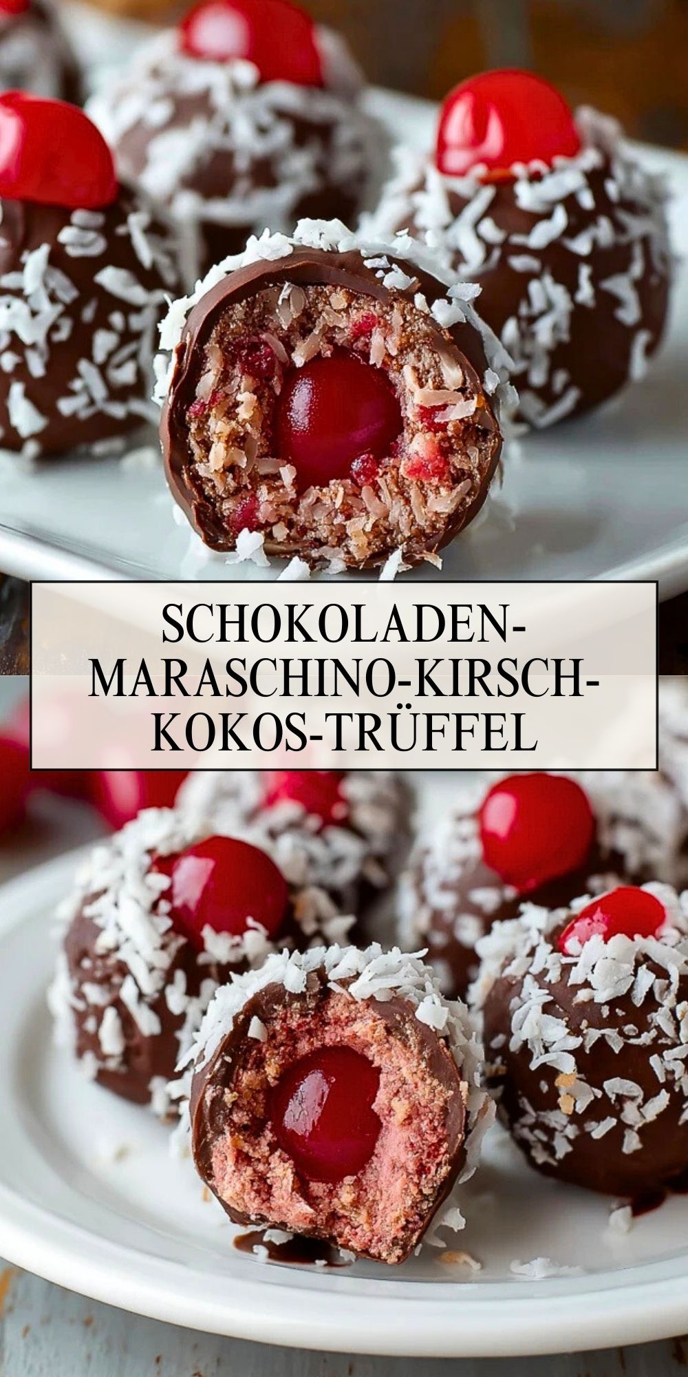 Fruchtige Maraschino-Kirschen, eine zarte Kokosfüllung und eine knackige Schokoladenhülle machen diese Trüffel zu einem besonders hübschen und köstlichen Konfekt. Sie sind ideal für Feiertage, Kaffeerunden oder als selbstgemachtes Geschenk und lassen sich wunderbar vorbereiten.