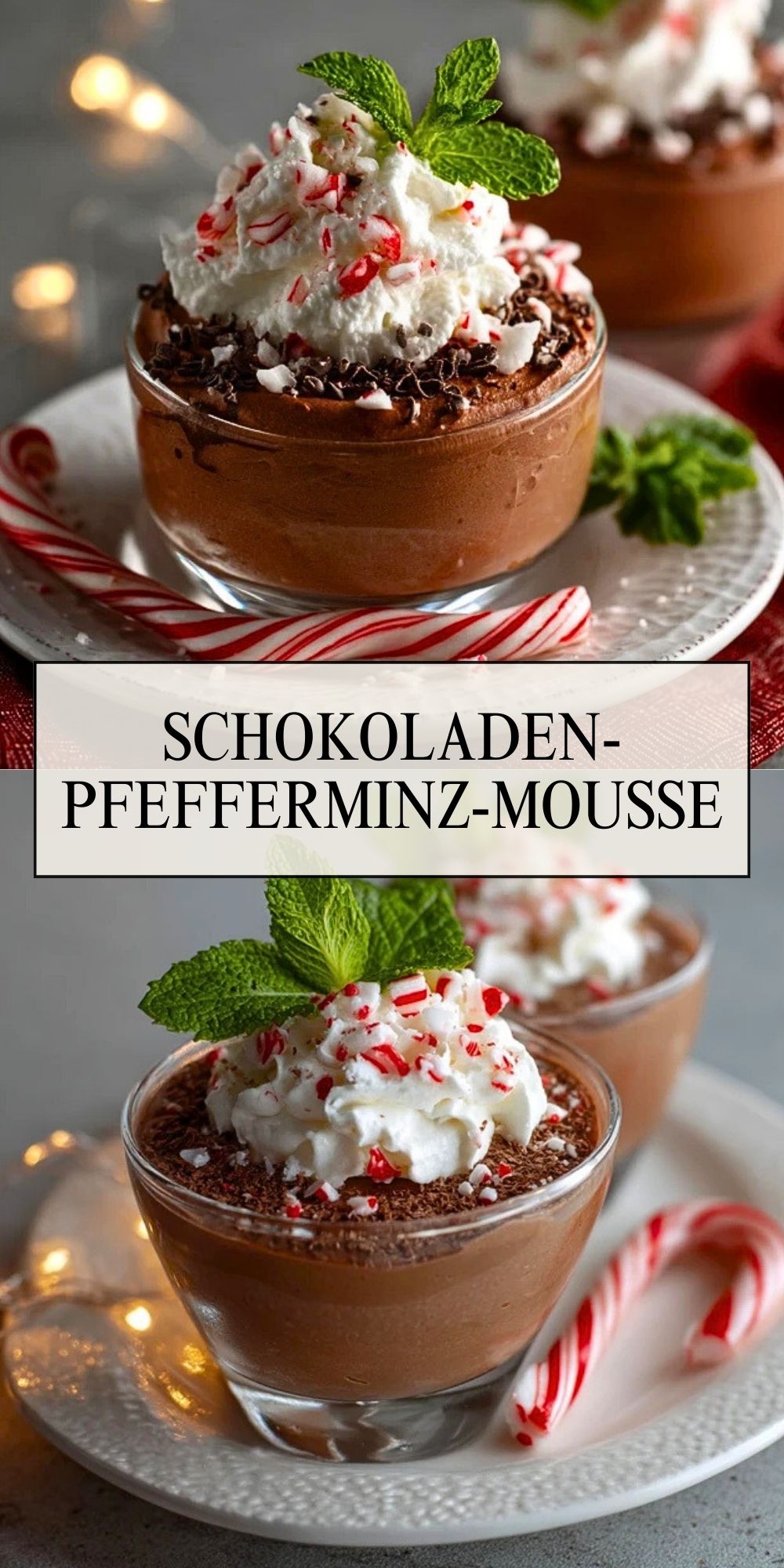 Diese Schokoladen-Pfefferminz-Mousse ist ein traumhaft cremiges Dessert, das mit feiner Zartbitterschokolade, frischer Minznote und einer fluffigen Konsistenz begeistert. Ideal für die Festtage, aber auch für jeden anderen Anlass, bei dem ein elegantes, aber einfaches Schokoladendessert gewünscht ist!