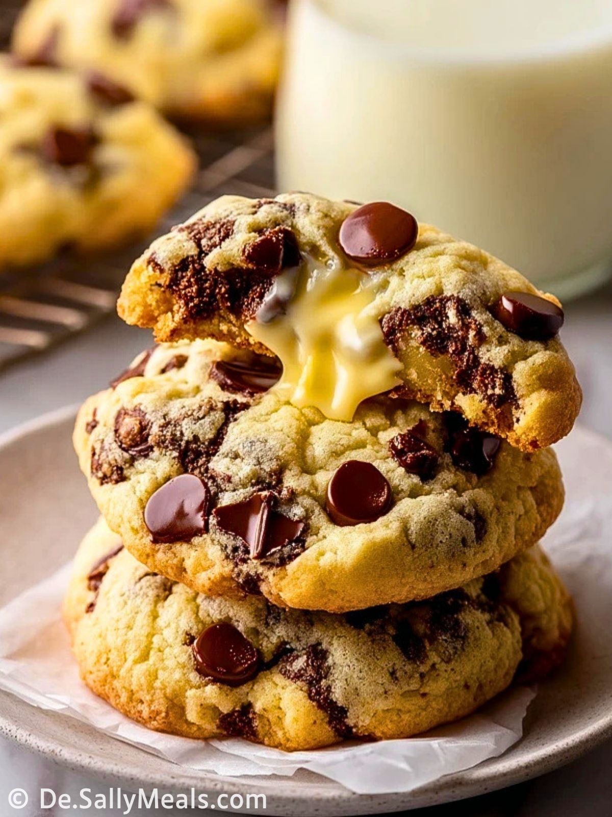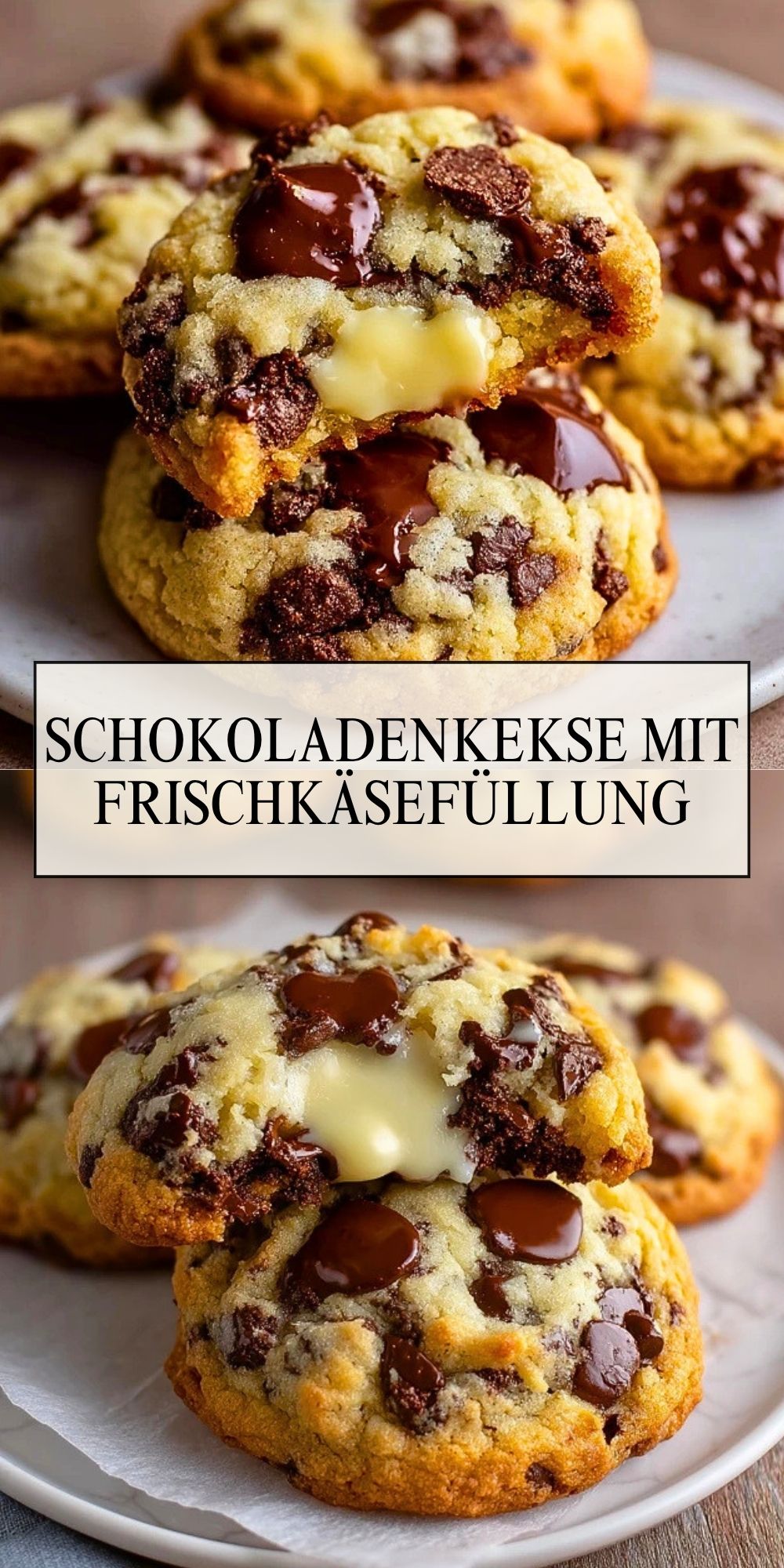Weiche, goldene Schokoladenkekse mit einer cremigen Frischkäsefüllung in der Mitte sind ein besonderes Gebäck für alle, die klassische Cookies mit einem kleinen Twist lieben. Außen zart mit schmelzenden Schokostückchen, innen weich und leicht cremig, eignen sie sich perfekt zum Nachmittagskaffee, für Gäste oder als süße Belohnung aus dem Ofen.