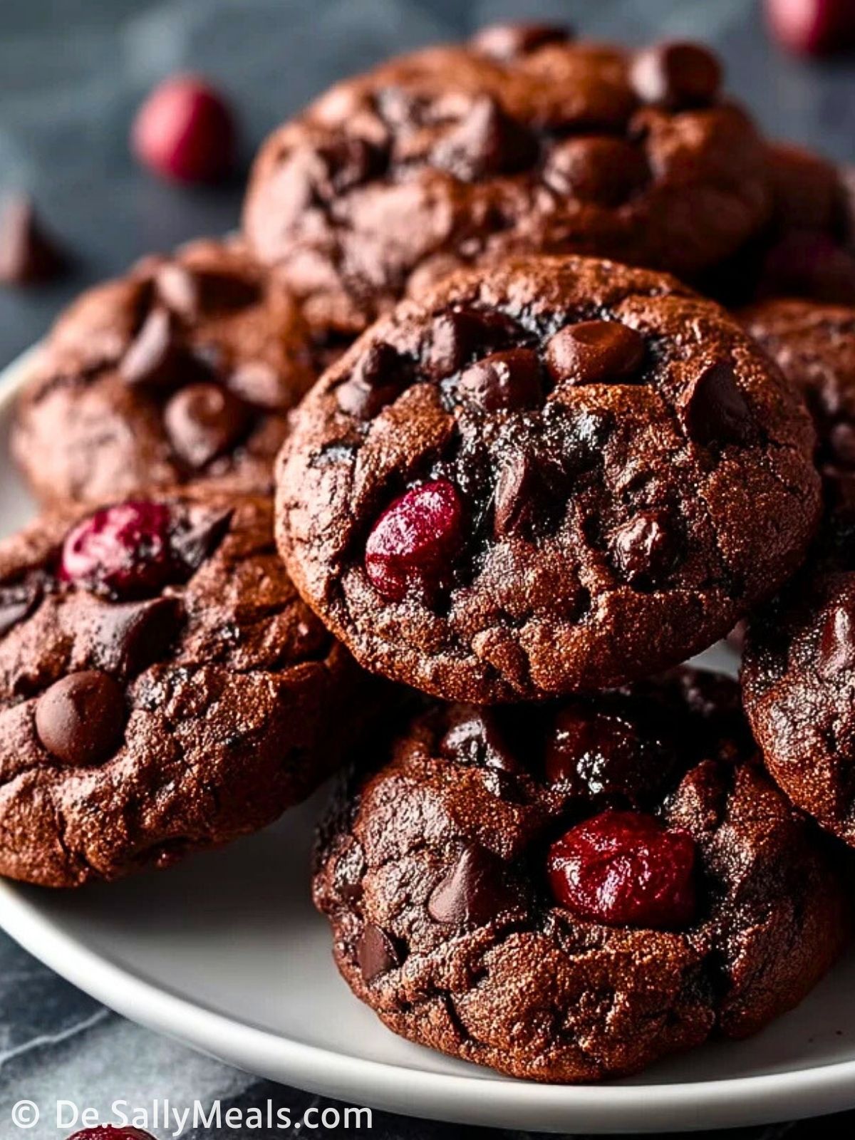 Ob als Begleitung zum Nachmittagskaffee, als Highlight für das nächste Keksbuffet oder als süßes Geschenk aus der eigenen Küche: Diese Kekse sind unkompliziert, schnell gemacht und überzeugen durch ihre feuchte, schokoladige Textur und die saftigen Fruchtstücke. Perfekt für jeden Anlass und garantiert ein Lieblingsrezept für alle, die es schokoladig mögen!