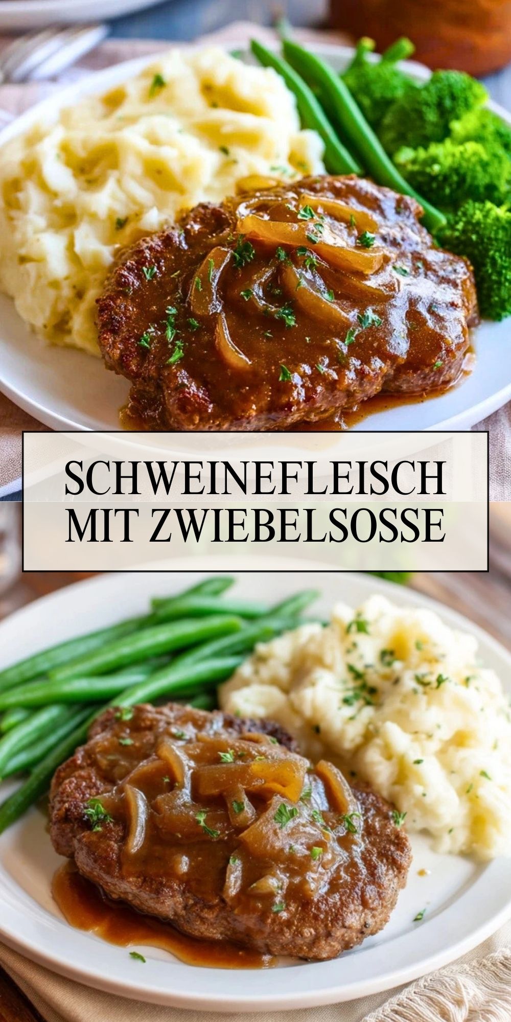 Zartes Schweinefleisch mit einer aromatischen Zwiebelsoße – dieses Gericht ist ein echter Klassiker der deutschen Hausmannskost. Saftiges Fleisch, das in einer kräftigen, herzhaften Soße aus Zwiebeln und Brühe badet, bringt sofort Kindheitserinnerungen und das Gefühl von Geborgenheit an den Esstisch. Es passt hervorragend zu Kartoffelpüree und knackigem Gemüse und ist das perfekte Sonntagsessen für die ganze Familie.