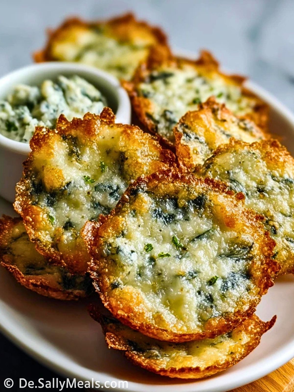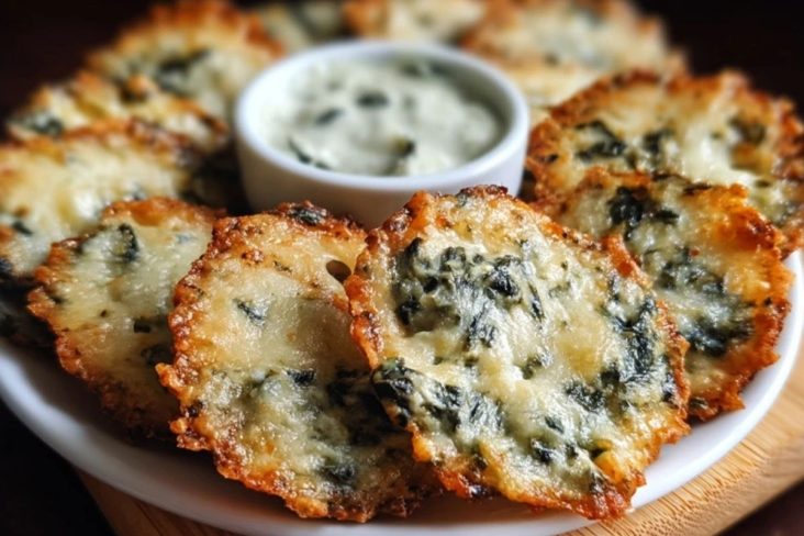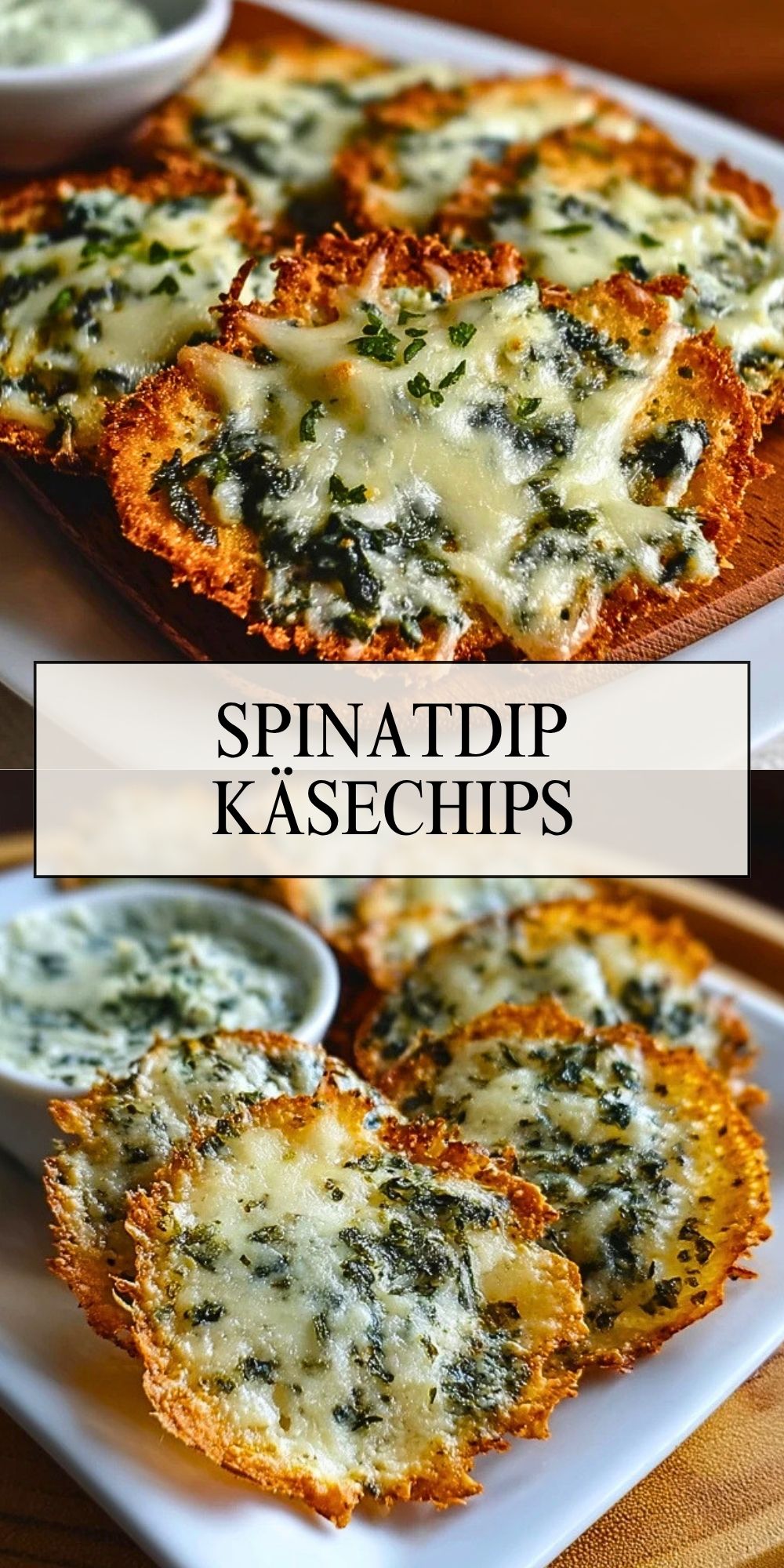 Knusprige Spinatdip Käsechips sind ein herzhafter Ofensnack mit cremiger Mitte, würzigem Käsegeschmack und goldbraunen Rändern. Sie eignen sich wunderbar als Fingerfood für Gäste, als Low-Carb-Snack oder als schnelle Beilage zu Suppen, Salaten und Dips. Durch die Kombination aus Spinat, Frischkäse und geschmolzenem Käse werden sie außen aromatisch kross und bleiben innen angenehm saftig.