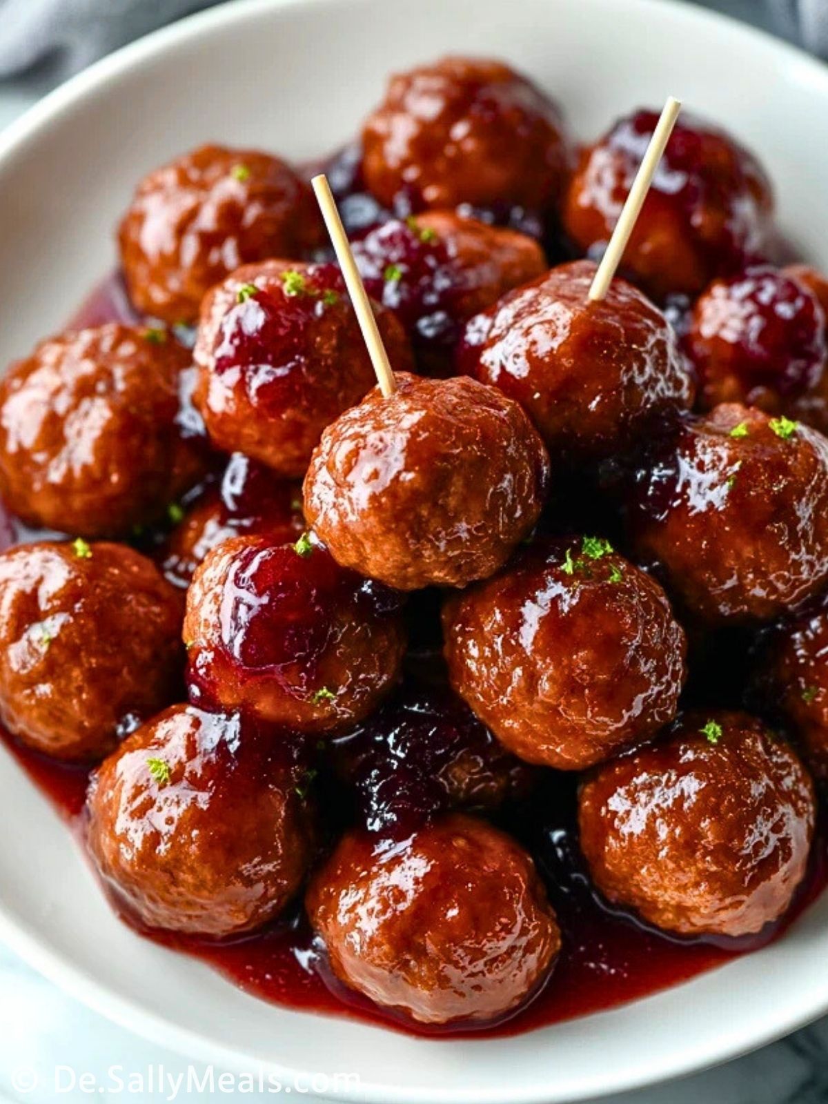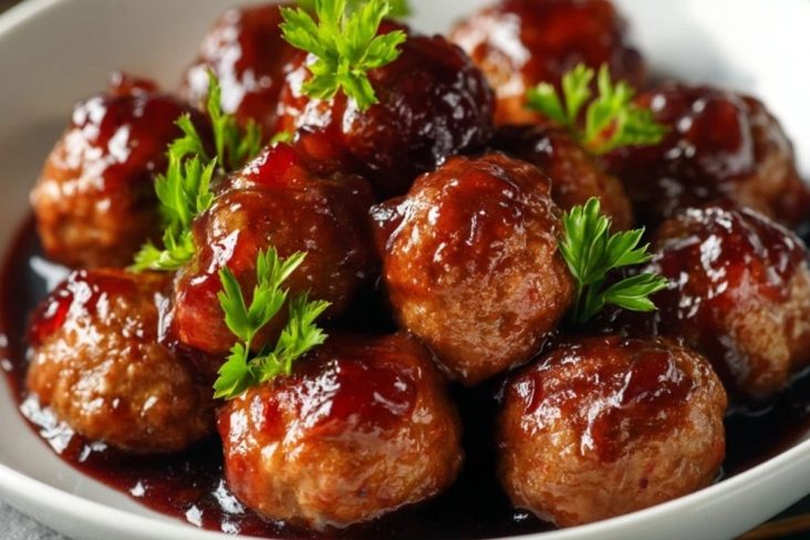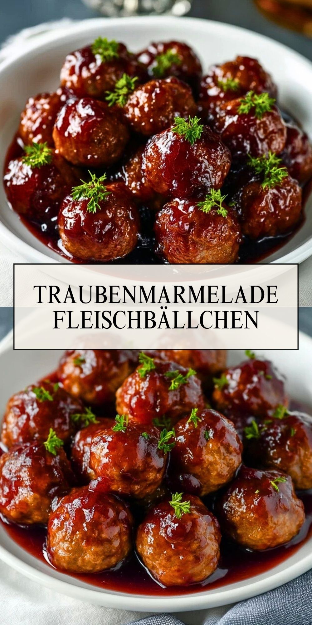 Traubenmarmelade-Fleischbällchen sind die Art von Rezept, die mit wenig Aufwand überraschend viel Eindruck macht. Die saftigen Bällchen werden in einer glänzenden, süß-würzigen Sauce aus Traubenmarmelade und herzhaften Zutaten geschmort, bis alles wunderbar klebrig, aromatisch und servierbereit ist. Das Ergebnis ist ein Gericht, das gleichzeitig gemütlich, raffiniert und absolut partytauglich wirkt.