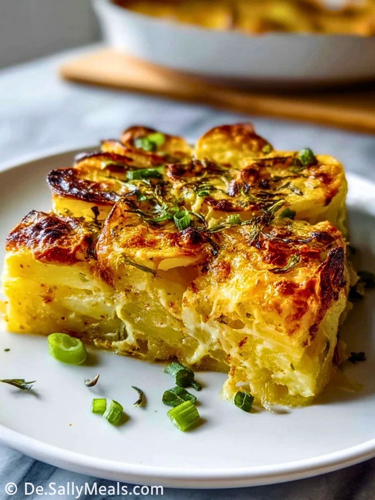 Dieser Kartoffelauflauf schmeckt hervorragend als vollständiges Hauptgericht mit grünem Salat, Gurkensalat oder gedünstetem Gemüse. Er passt aber auch sehr gut als Beilage zu gebratenen Pilzen, veganen Frikadellen oder Linsenbratlingen.