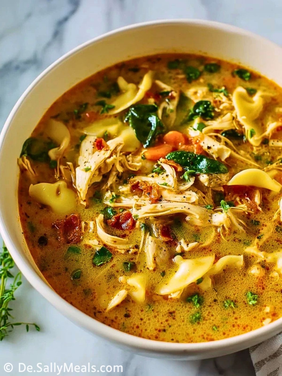 Der Name passt wunderbar, weil diese Suppe alles mitbringt, was man an einem guten Wohlfühlgericht liebt: Sie ist sättigend, cremig, aromatisch und tröstlich. Mit ihrer Kombination aus saftigem Huhn, Nudeln, etwas Speck, Kräutern und einer milden Cremigkeit wirkt sie fast so, als wäre sie mit besonders viel Liebe gekocht worden.