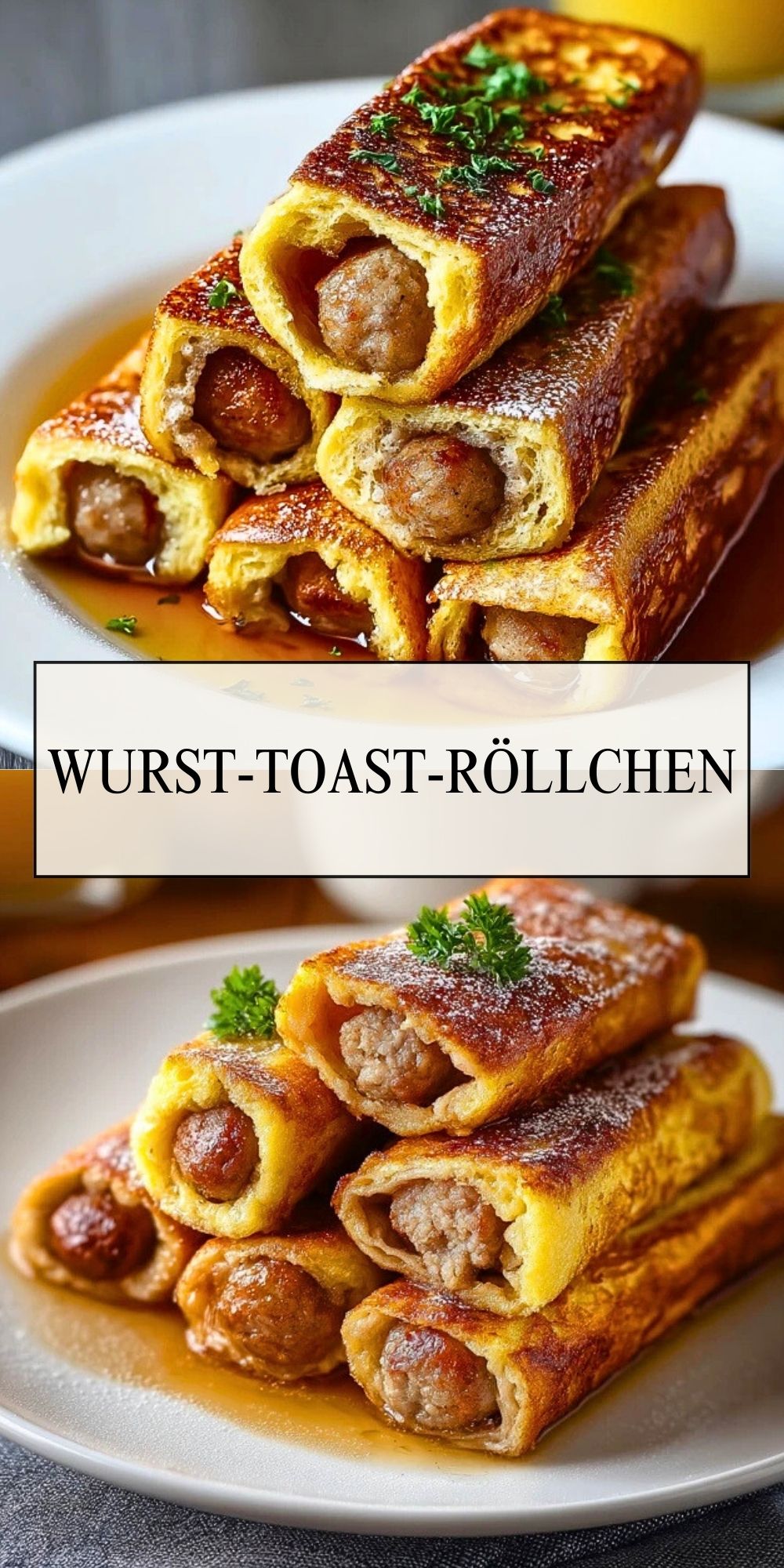 Wurst-Toast-Röllchen sind eine köstliche Kombination aus goldbraun ausgebackenem Toastbrot und herzhafter Bratwurst. Perfekt zum Frühstück, Brunch oder als herzhafter Snack – außen knusprig, innen saftig, einfach und schnell zubereitet.