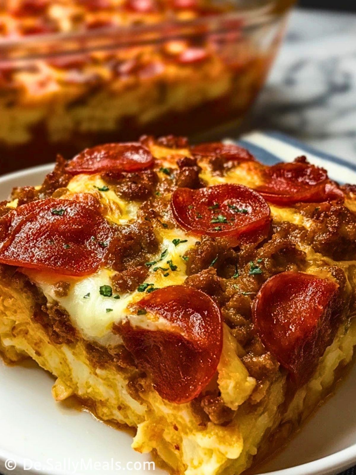 Dieser Auflauf vereint die besten Elemente einer deftigen Hackfleischpfanne mit dem unverwechselbaren Geschmack einer Peperoni-Pizza. Das Zusammenspiel aus würzigem Fleisch, fruchtiger Sauce, geschmolzenem Käse und leicht knusprigen Peperoni sorgt für viel Geschmack in jeder Portion. Außerdem ist das Rezept sehr wandelbar, sodass du Schärfe, Käsesorte oder zusätzliche Zutaten ganz nach deinem Geschmack anpassen kannst.