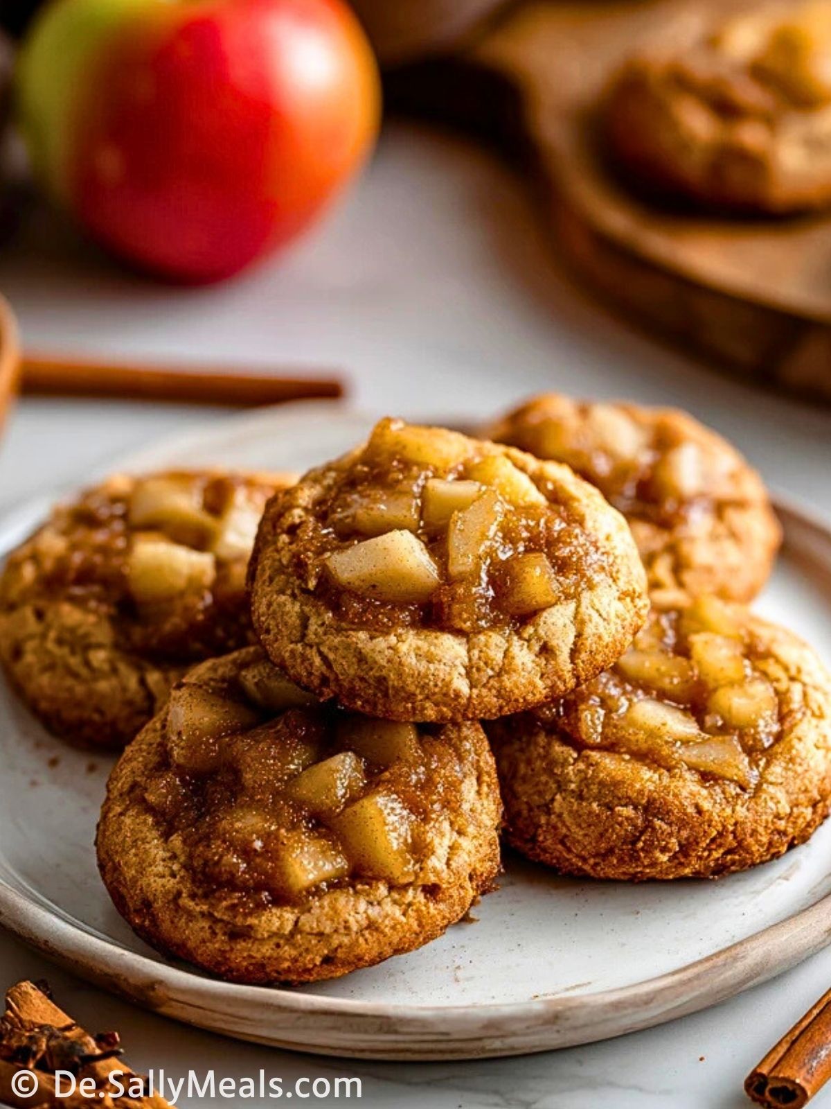 Zimt-Apfel-Plätzchen sind weiche, buttrige Plätzchen mit einem saftigen Apfel-Zimt-Topping, das an kleinen Apfelkuchen erinnert – perfekt für Herbst und Winter oder wann immer dir nach gemütlichem Kaffeedegustieren ist.